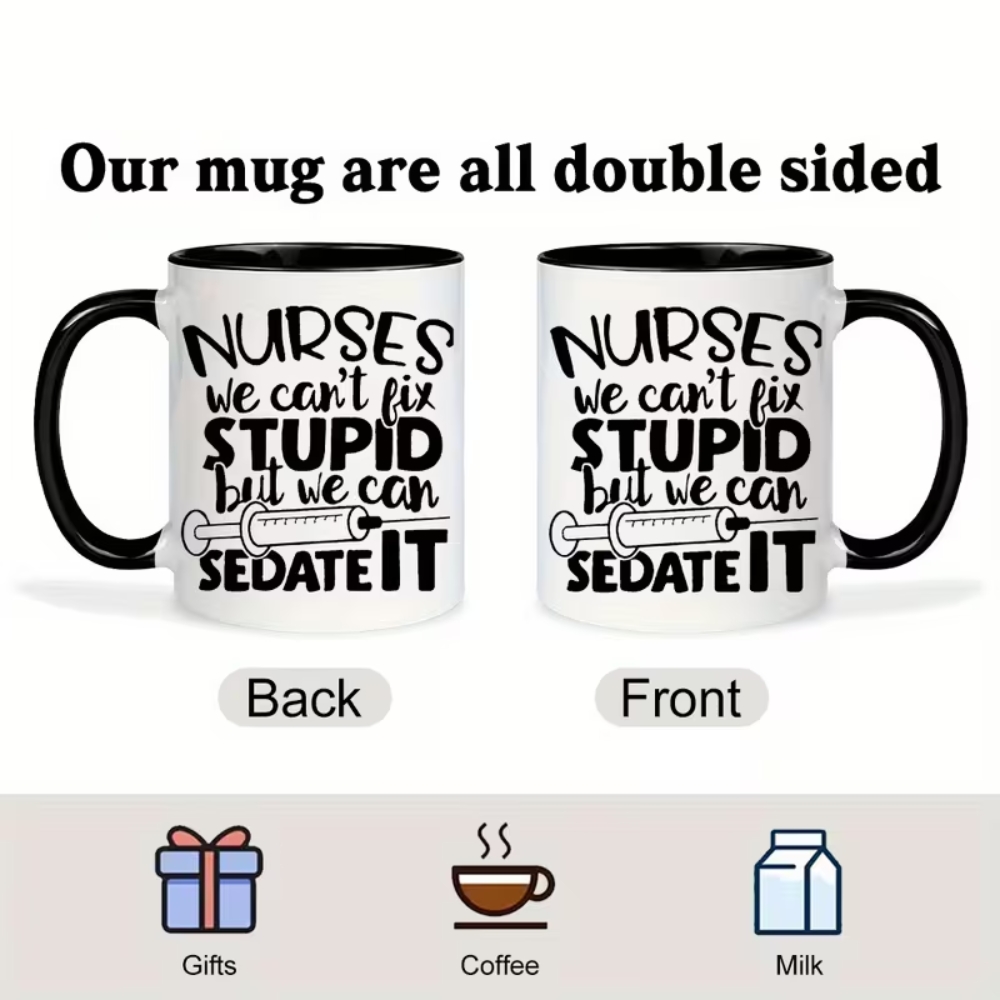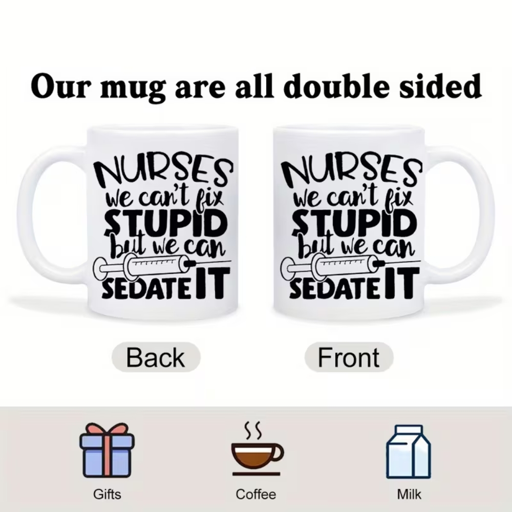 The 11oz Funny Nurse Quote Print Ceramic Coffee Mug is a versatile addition to any healthcare setting or home collection. With reusable ceramic construction, machine wash compatibility, and bold themed humor, it serves as both a practical drinkware item and a thoughtful gift choice. Ideal for nurses, doctors, and healthcare workers seeking a touch of personality in daily routines.