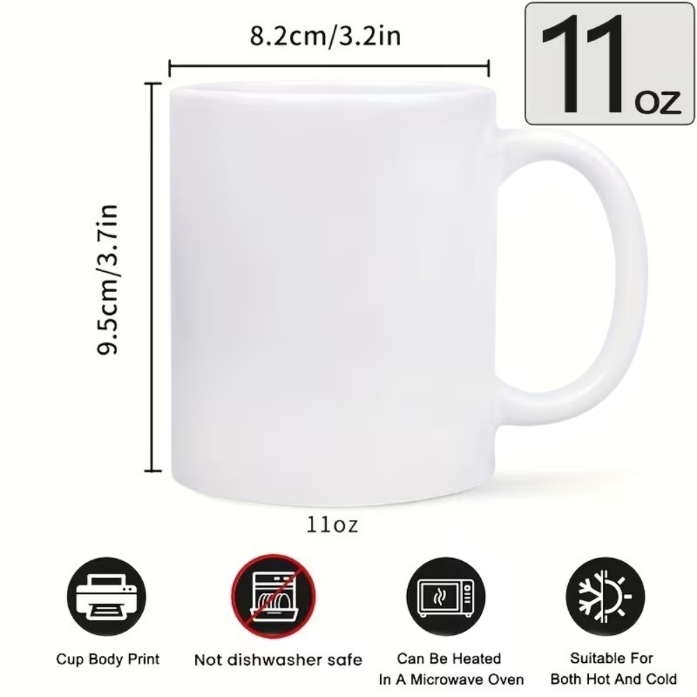 With an 11oz capacity, this ceramic mug accommodates standard servings of coffee, tea, or other beverages. The smooth glossy surface supports easy cleaning, while the microwave-compatible construction allows convenient reheating. Its double-sided print ensures the message is visible whether placed on a desk. The comfortable handle provides an intact grip during long work shifts or breaks.