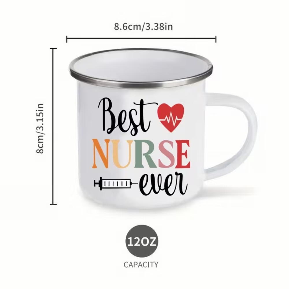 The 12oz Enamel Nurse Appreciation Themed Camping Coffee Mug brings together classic outdoor style and a bold nurse recognition message. With its metal travel-friendly structure and reusable design, it is suitable for camping trips, workplace use, or home kitchens. A meaningful gift option for nurses celebrating milestones, achievements, and everyday dedication.
