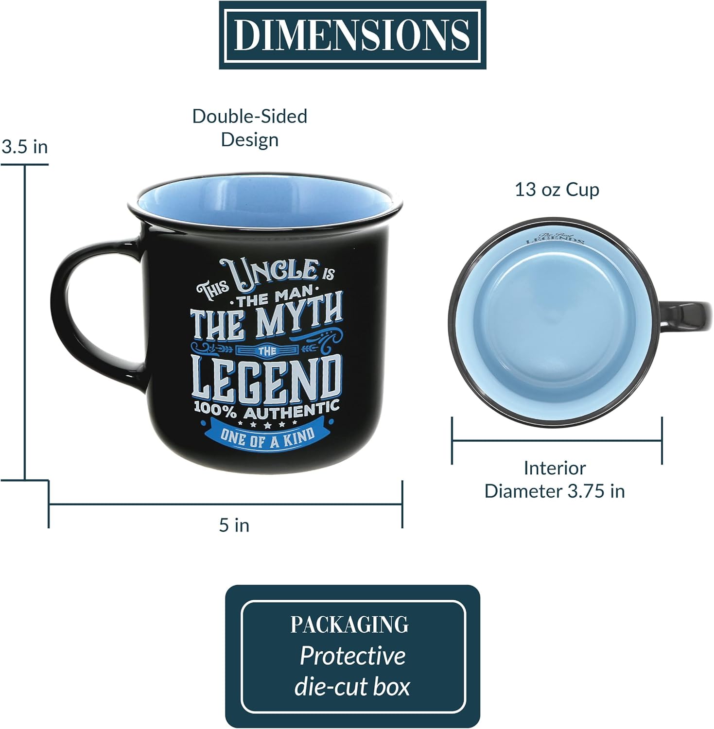The 13 oz Legend Theme Quote Printed Ceramic Coffee Mug For Uncle offers a combination of daily practicality and message-driven design. Its campfire-style form provides a distinctive silhouette while maintaining everyday usability. The printed text is arranged for readability and visual balance, making the mug suitable for frequent use without visual clutter. Its ceramic construction supports consistent performance for common beverages, making it a dependable drinkware option with added meaning through typography.