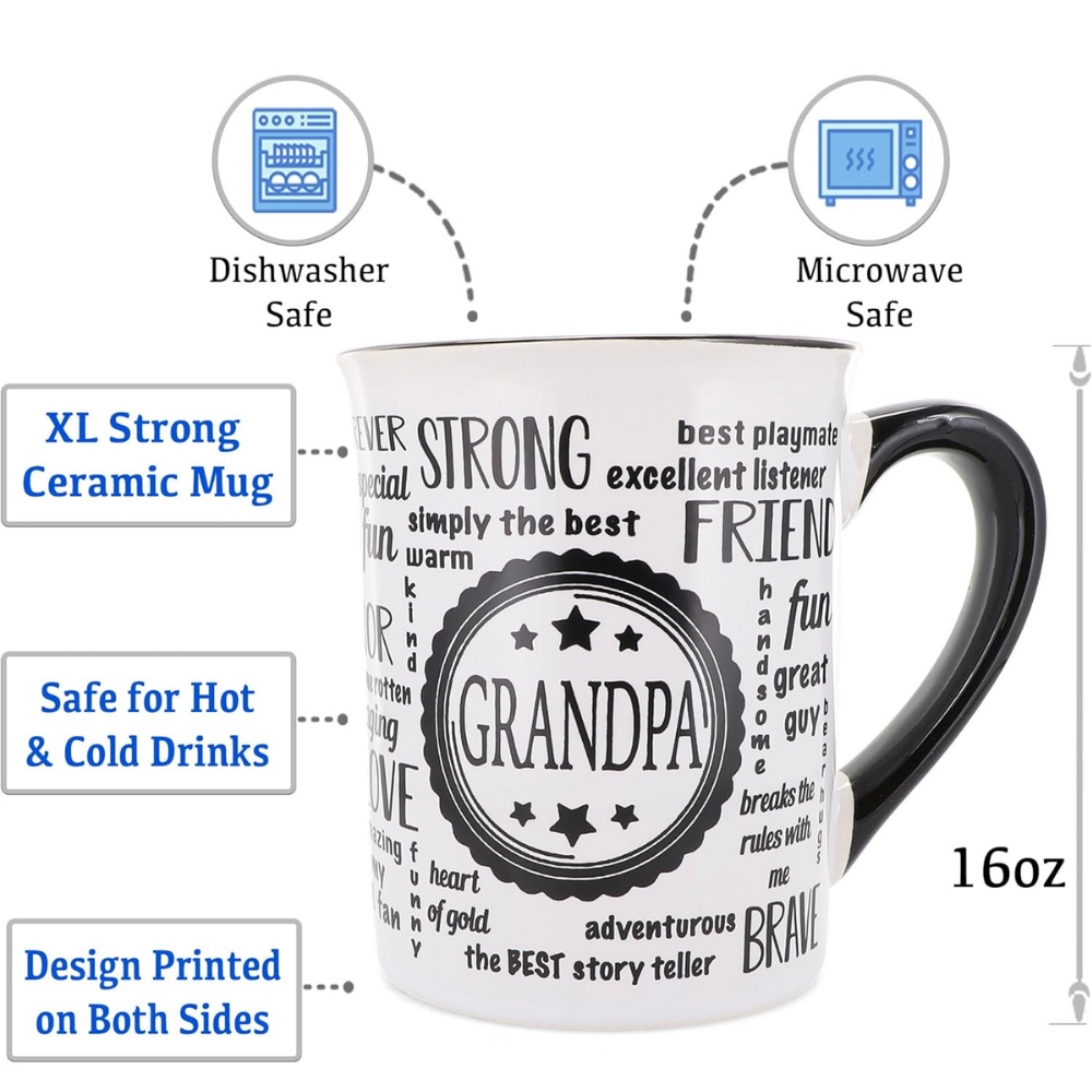 - Dishwasher Compatible: This 16oz Coffee Mug With Thoughtful Message Printed For Grandpa is designed for convenience. Simply place it in the dishwasher for easy cleaning, saving you time and effort.