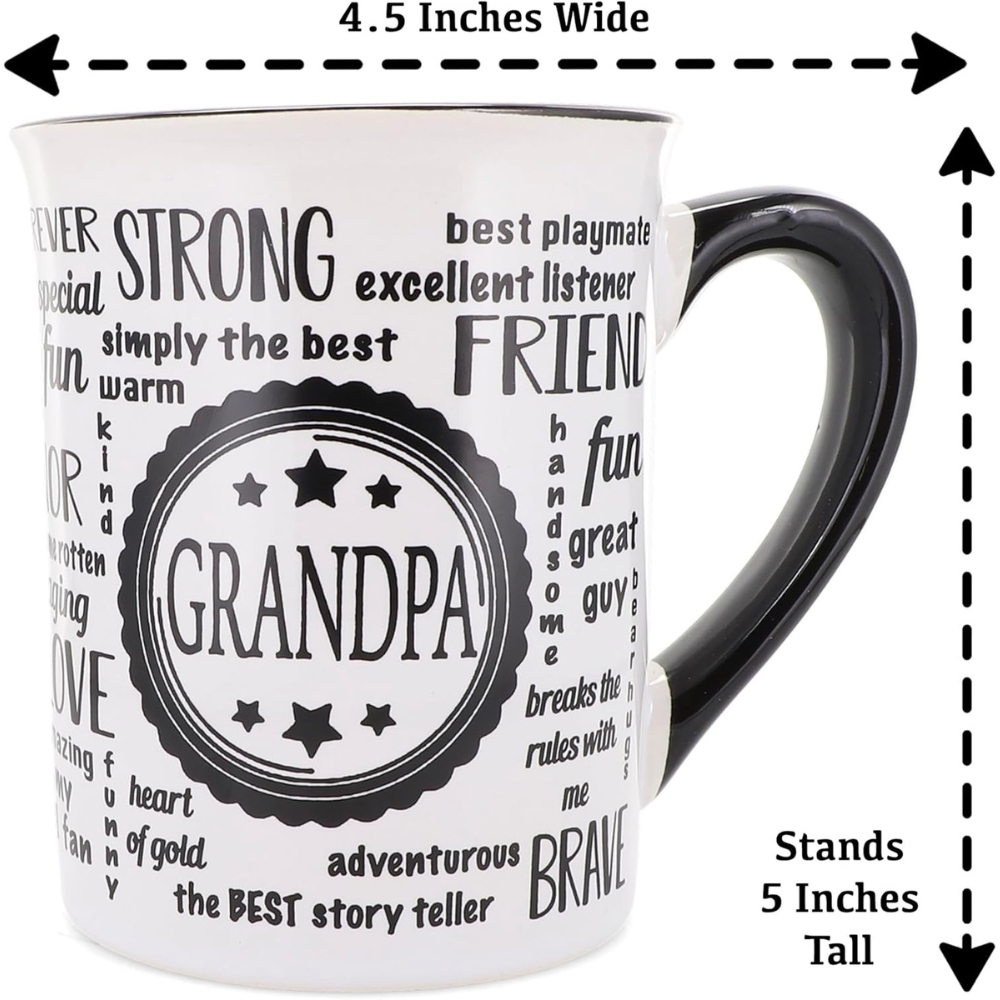 Whether your grandpa enjoys his morning coffee, tea, or any other beverage, this mug’s 16 oz capacity is perfect for holding just the right amount. The large handle provides a comfortable grip, making it suitable for all sizes. The black handle adds to its elegant and timeless design, fitting perfectly into any home or office. Ideal for any occasion, whether it’s a birthday, Father’s Day, or just to show him how much he means to you, this mug is guaranteed to be appreciated.