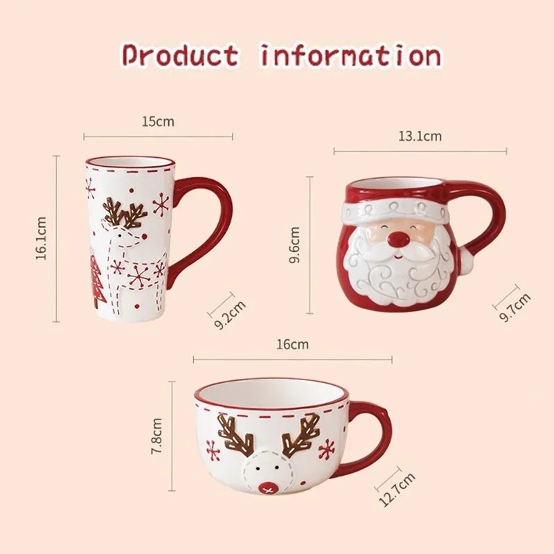 The Christmas Santa Claus Ceramic Coffee Mug With 3D Embossed Design offers charm, utility and strong holiday appeal. Its ceramic construction supports everyday winter drink use, while the detailed artwork builds festive atmosphere. With multiple size options and a versatile structure, it suits families, offices and gifting occasions. This mug brings seasonal enjoyment to Christmas 2025 and complements holiday décor and drink routines.