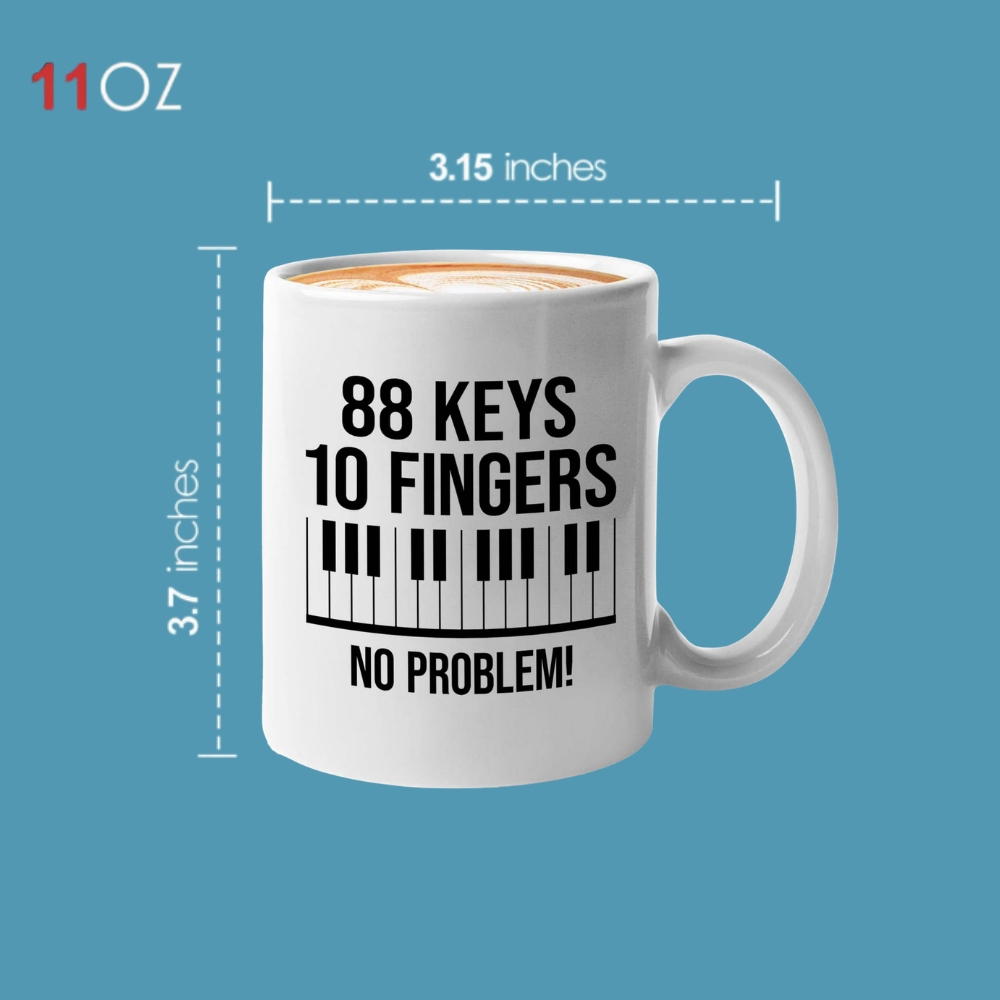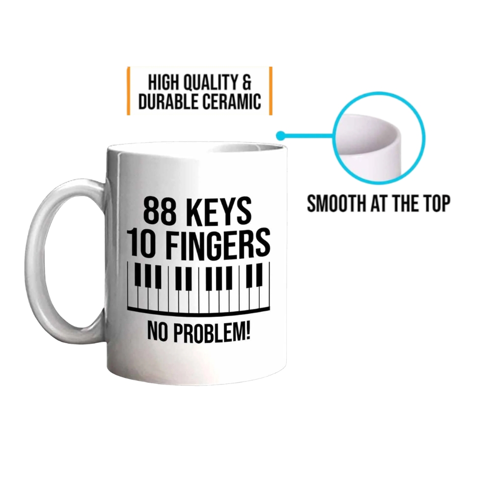 The 88 Keys Piano Player Themed Musician Coffee Mug offers a bold piano-inspired design paired with practical everyday use. Crafted in white plastic with a standout quote graphic, it is suitable for coffee, tea, and more. Whether chosen as a personal accessory or a gift for a pianist or music enthusiast, this 88 Keys mug adds musical flair to daily routines.