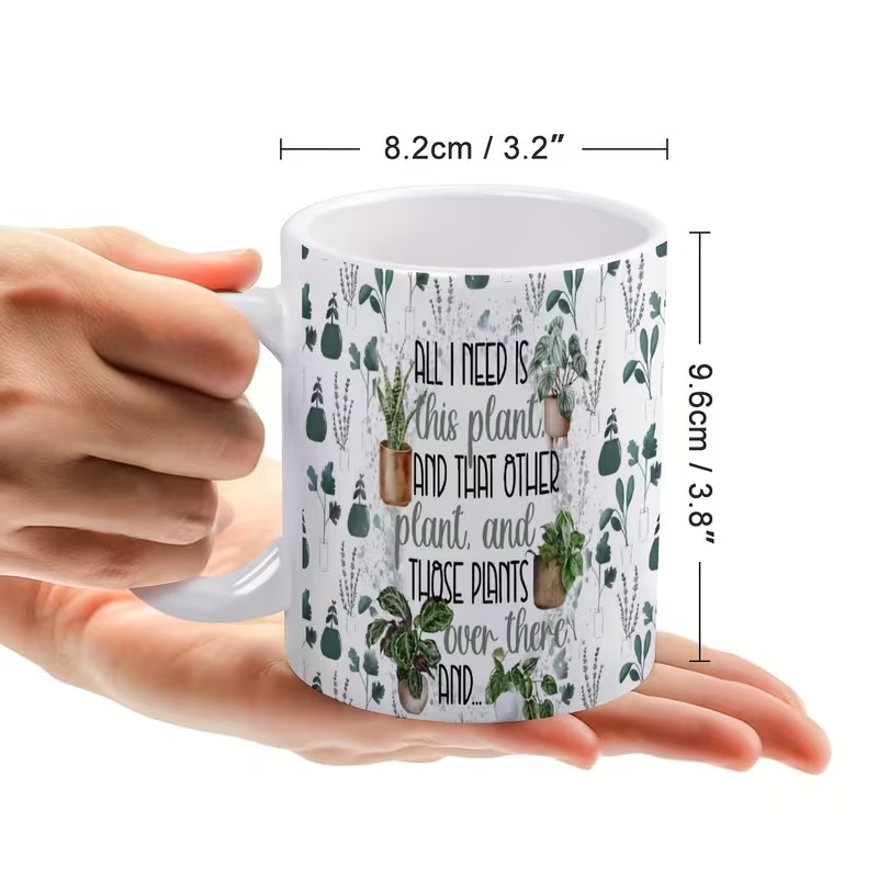 The All I Need Is This Plant Text Printed 11 Oz Gardening Coffee Mug is designed for individuals who appreciate greenery and thoughtful printed designs. Featuring a botanical message and illustrated potted plants, this mug adds character to everyday beverage moments. It combines practical structure with decorative appeal, making it suitable for home, office, or garden settings.