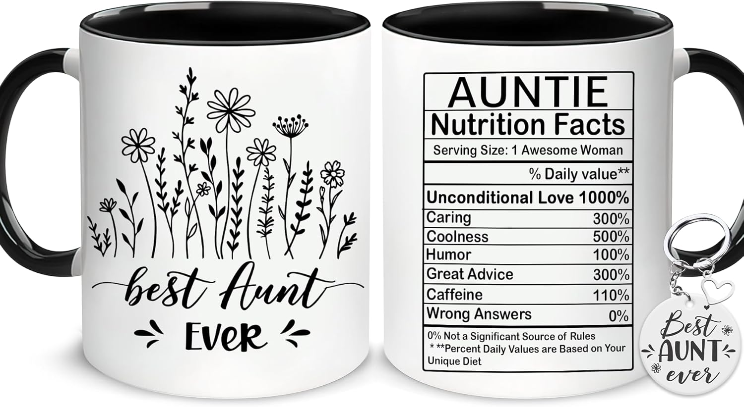 Start any day with a moment of meaning through Aunt Ever Floral Quote Ceramic Coffee Mug. Designed with a printed message that lists fictional "nutrition facts" for an aunt, this mug adds humor and sentiment to a standard daily item. It blends practicality with a symbolic message that reflects appreciation and connection.