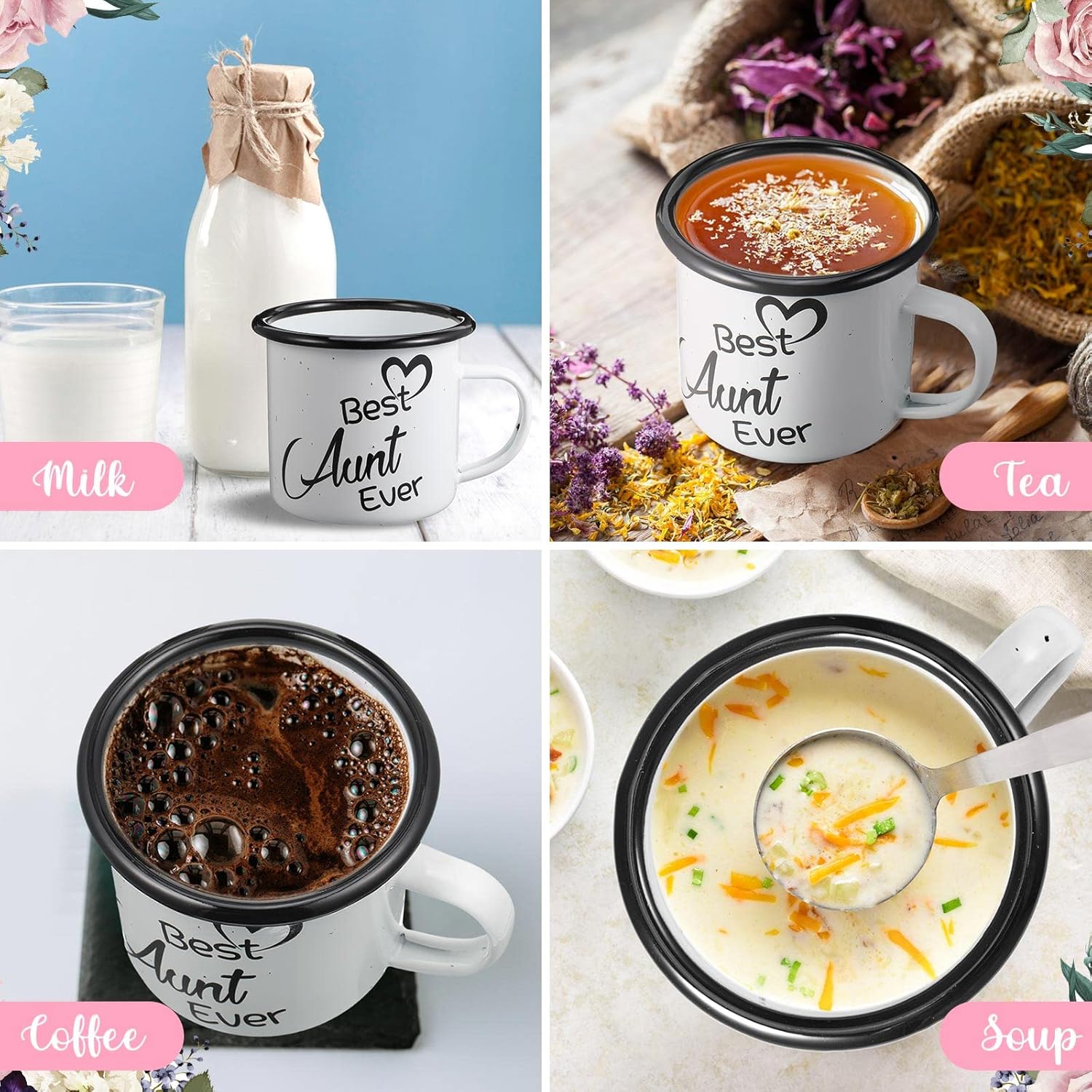 The Aunt Printed Coffee Mug combines a message-led design with basic structure and ease of use. Built for general drinkware use, it maintains a consistent form with steel and enamel layers. Its printed quote adds character, while the light build supports regular handling.