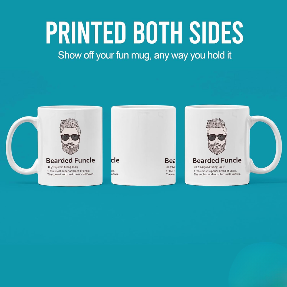Looking for the perfect gift for your fun and cool uncle? The Bearded Funcle Printed Coffee Mug For Uncle is a hilarious and practical gift that any uncle will appreciate. Whether he’s the life of the party or just enjoys a good laugh, this mug is designed to bring joy every time he drinks from it. The graphic of a bearded man in sunglasses, paired with the witty "Bearded Funcle" definition, adds a look to his day. Its ceramic build ensures that it will last for years, while the microwave compatible and dishwasher compatible features make it convenient for everyday use. Whether it's used for coffee, tea, or just as a desk accessory, this mug will always remind him that he’s the coolest uncle around. It’s perfect for Father’s Day, birthdays, or any occasion when you want to make your uncle feel special and appreciated.