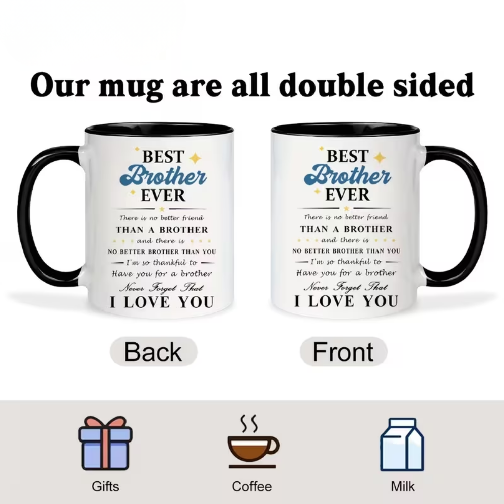 Crafted from ceramic material, it offers a classic mug feel with a clean finish. Whether placed in the kitchen, used at an office desk, or gifted during family celebrations, this mug combines practical use with a warm quote design. Its message makes it a memorable item for siblings, creating a simple way to share appreciation through daily drinkware. This cup works well for coffee, tea, hot chocolate, and other warm beverages.