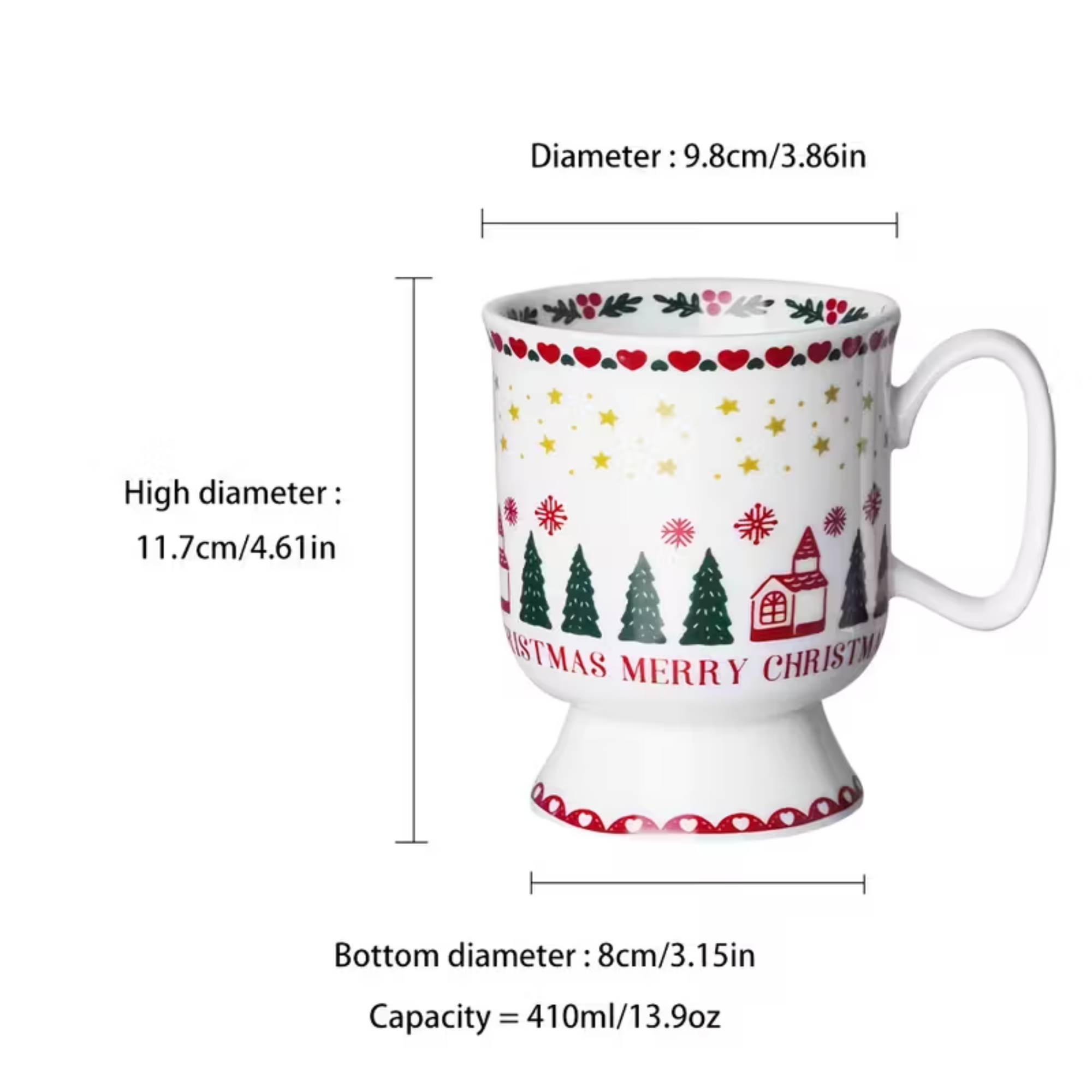 Its reusable structure allows continued use throughout the season. The mug also makes an appealing Christmas gift due to its simple shape and detailed artwork. It fits easily into gift baskets and complements winter displays. The design suits different decorative setups, adding visual warmth to each space. With its smooth finish and seasonal pattern, this mug serves as a cheerful addition to holiday drinkware.