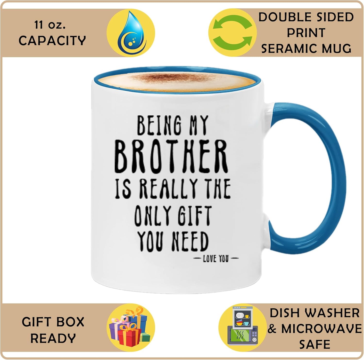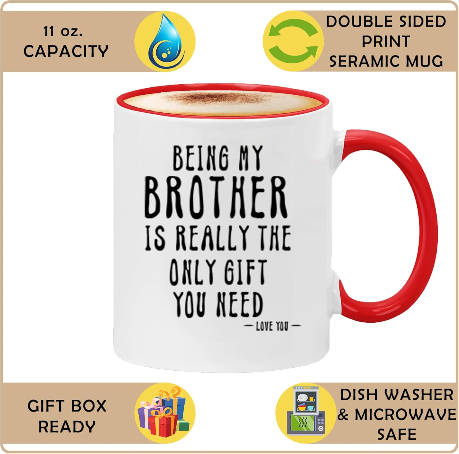 The Classic Ceramic Brother Inspired Mug With Funny Quote is a printed ceramic coffee mug designed for everyday beverage use. It features a bold text message that makes it a meaningful item for family gifting occasions. This mug is made from ceramic material and is intended for hot or cold drinks such as coffee, tea, or cocoa. The design is printed clearly on the surface and is suitable for home, office, or kitchen environments. Its standard size makes it practical for daily routines and regular drink servings.