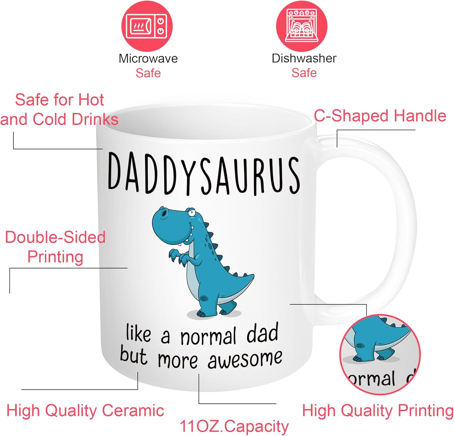 The Funny Dad Coffee Mug offers a straightforward drinkware option with a humorous quote and easy-to-use structure. Designed with a printed graphic visible from both sides, this mug serves its purpose across home, office, and gift-use scenarios.