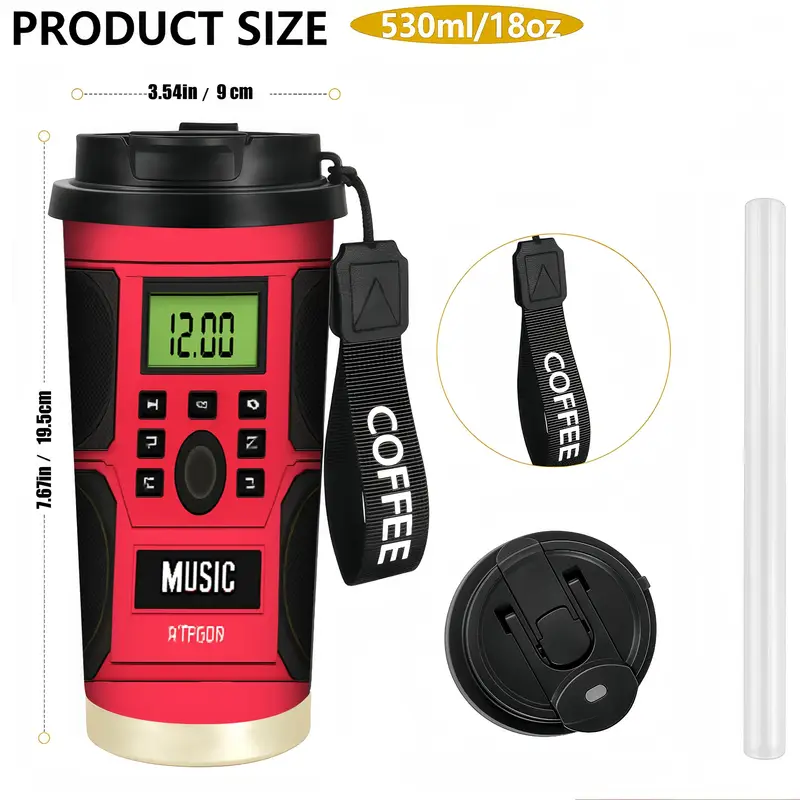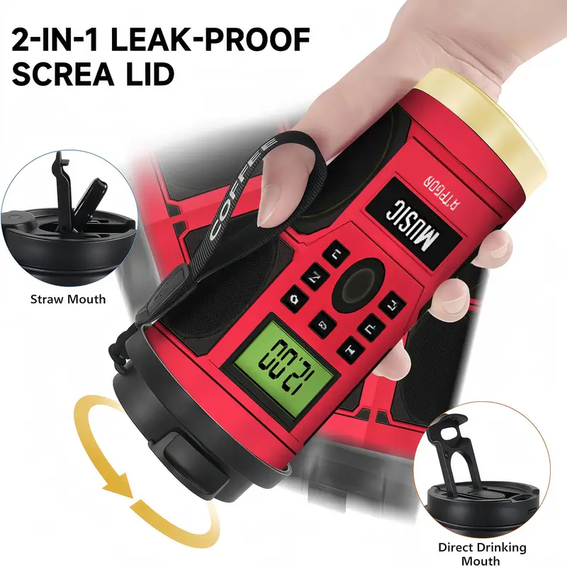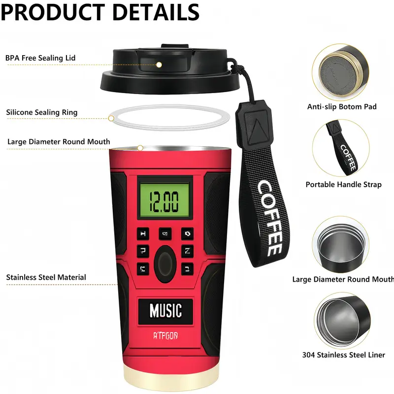 Its stainless steel structure, leakproof lid, and stylish finish cater to users who need both form and function in one container. Whether you're working, traveling, or exploring, this coffee travel Tumbler with music is ready to go where you go—music included.