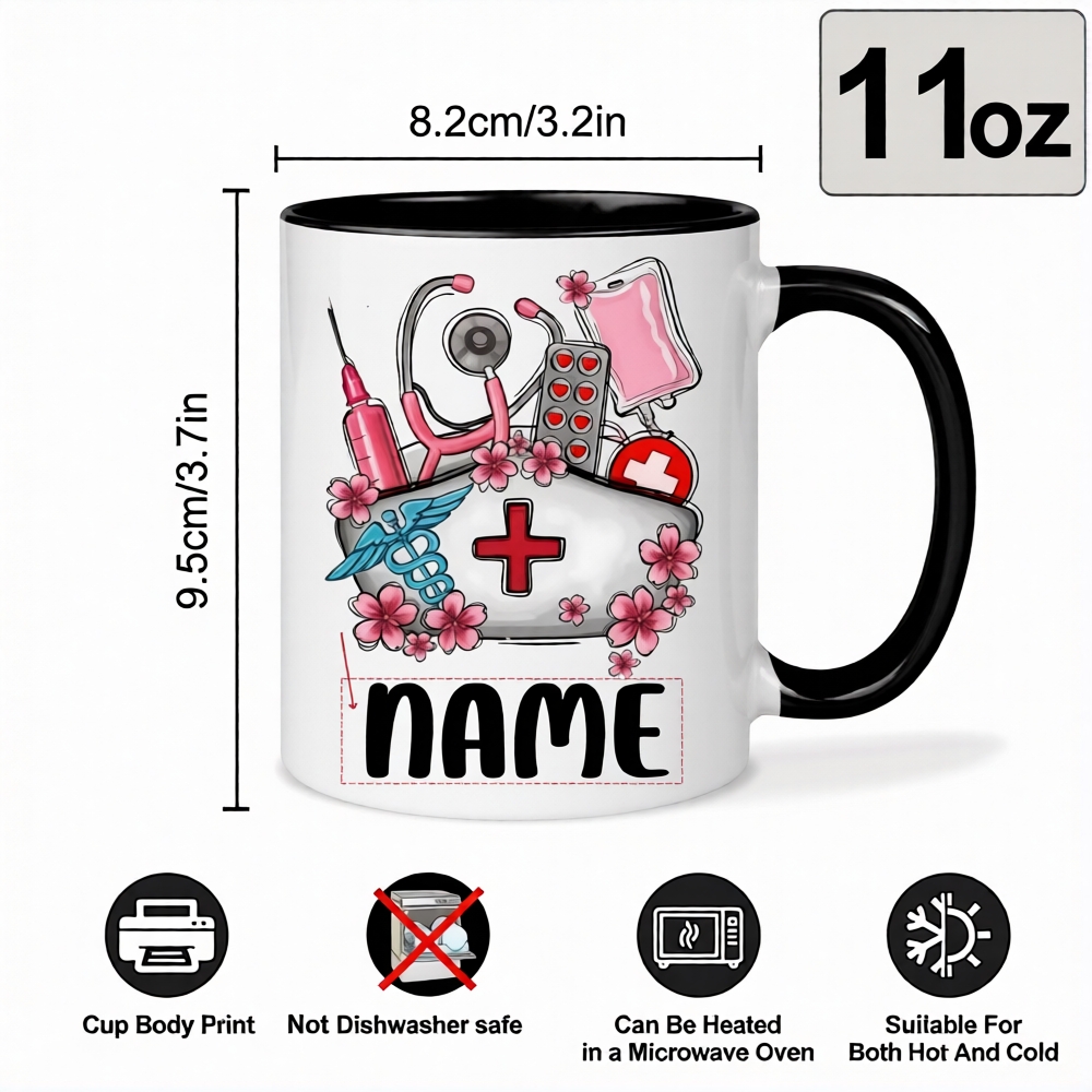 Constructed from ceramic, this 11oz mug supports microwave and dishwasher cleaning for convenience. Its sturdy handle and balanced shape provide a comfortable drinking experience. This mug is suitable for nurses, nursing students, or healthcare staff looking for a practical yet symbolic daily-use item. It makes a thoughtful gift option for appreciation events or professional milestones.