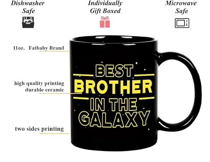 Double Sided Message Printed Coffee Mug For Brother combines everyday drinkware function with a printed message theme. With its 11-ounce capacity, ceramic construction, microwave compatibility, and simple typography design, it serves as a practical mug option for home or office use.