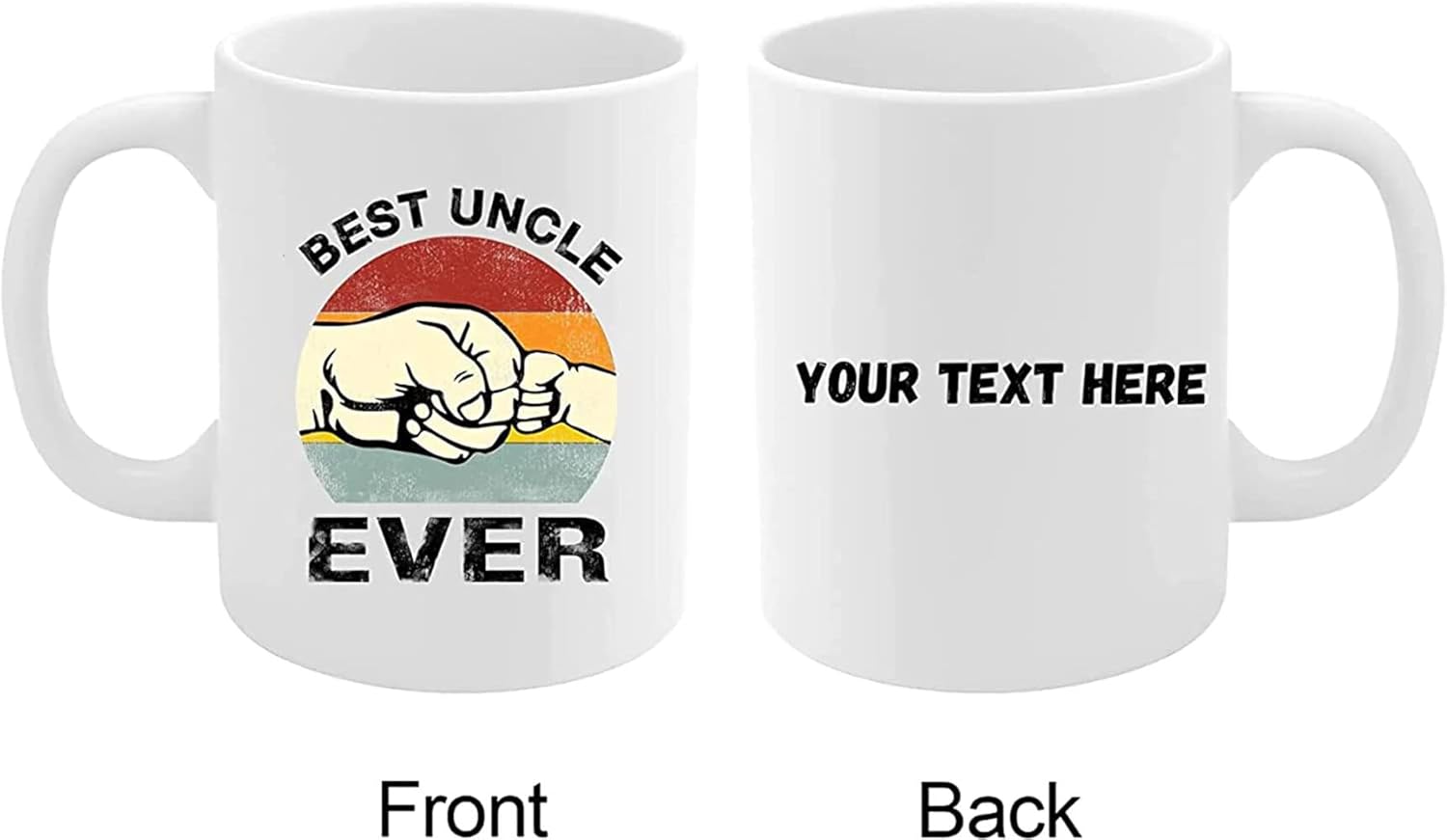 This Bump Printed Ceramic Coffee Mug For Uncle is designed for consistent daily beverage use while featuring a printed fist-bump graphic. The cylindrical shape supports balance on desks and countertops, and the handle allows steady lifting during use. Its smooth glazed surface supports easy cleaning with standard dishwasher or washing routines. Suitable for coffee, tea, or similar drinks, the mug integrates easily into indoor environments such as kitchens or offices. The printed design remains visible during regular heating and washing conditions. This mug functions as reusable drinkware while maintaining a clear and simple graphic layout for everyday use.