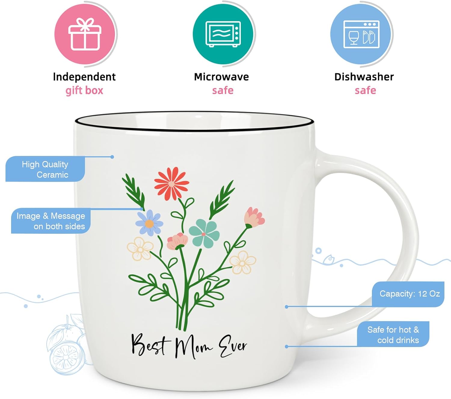 Give the gift of with the Floral Ceramic Coffee Mug. It’s a way to show your appreciation for the mom in your life. Its ceramic build, vibrant floral design, and thoughtful message make it an excellent choice for any occasion. Whether for Mother’s Day, a birthday, or a simple “thank you,” this mug will serve as a lasting reminder of the special connection between you and your mom.