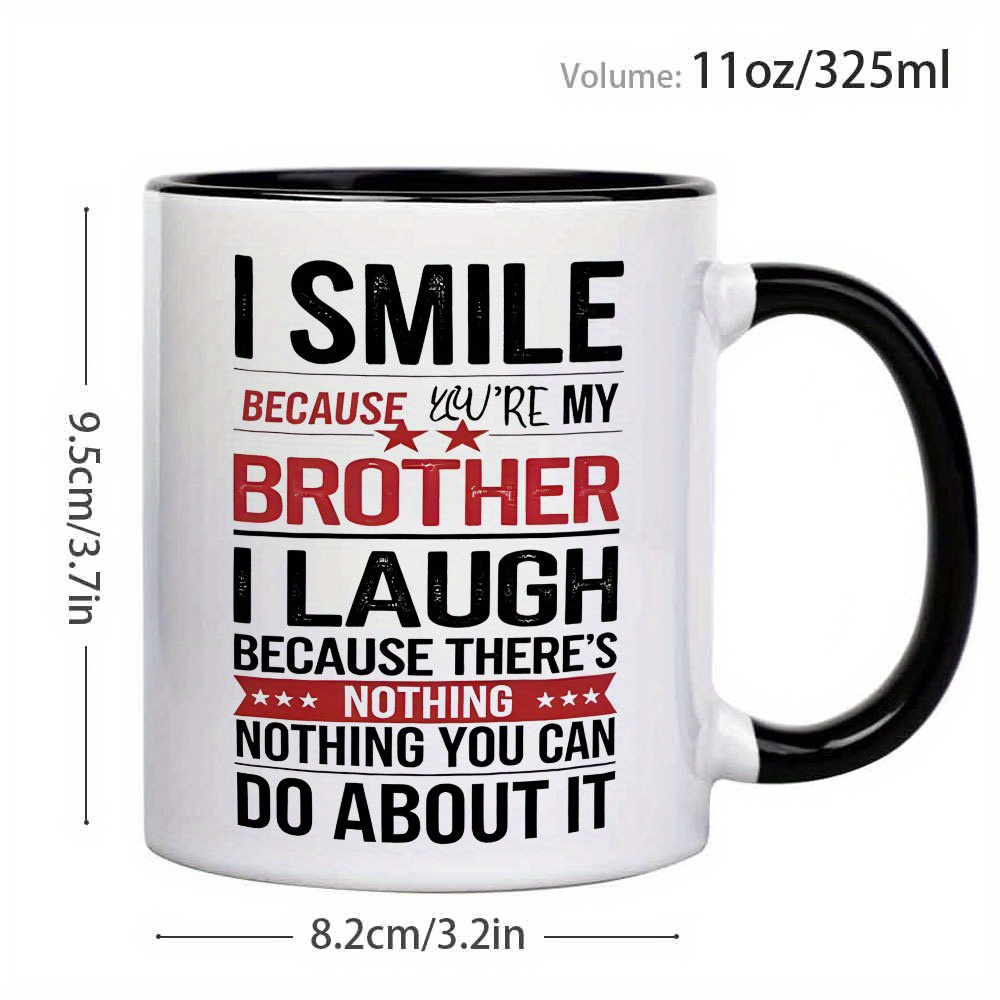 Its reusable ceramic build makes it suitable for regular beverage use, while the machine-washable feature offers convenience. Whether gifted for a birthday, used during family gatherings, or placed on an office desk, it serves as both a functional cup and a humorous reminder of sibling connection. For anyone searching for a singular brother-themed mug that brings laughter to daily routines, this is an excellent choice.