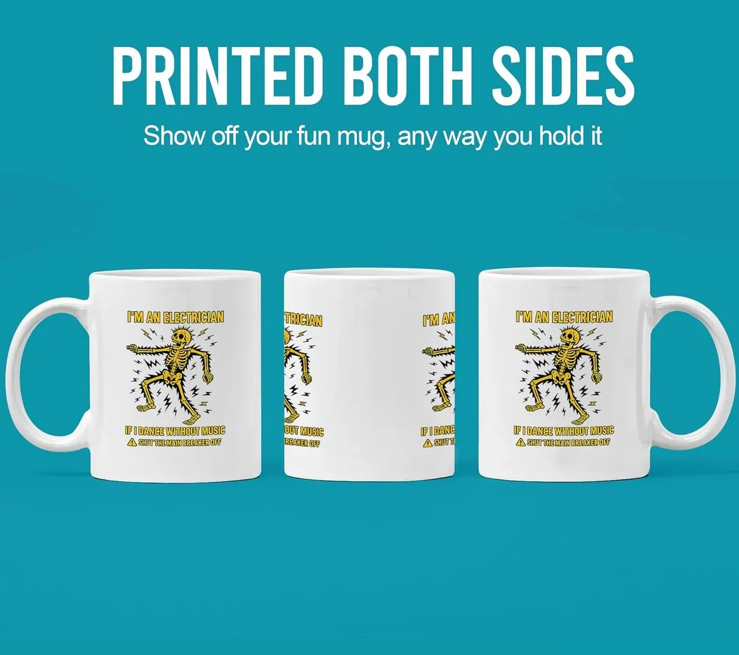 The Funny Electrician Dance Themed With Warning Design Coffee Mug stands out because of its vibrant illustration and clever industry humor. The bold yellow graphic surrounded by lightning bolts makes it visually striking, while the witty message resonates with electricians who understand the joke. Unlike plain novelty mugs, this design combines color, humor, and quality craftsmanship. The sturdy ceramic retains heat well, while the comfortable handle ensures a intact grip. It’s practical enough for daily use and funny enough to spark conversation at job sites or in the office break room.