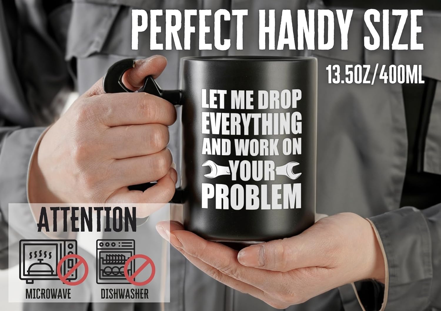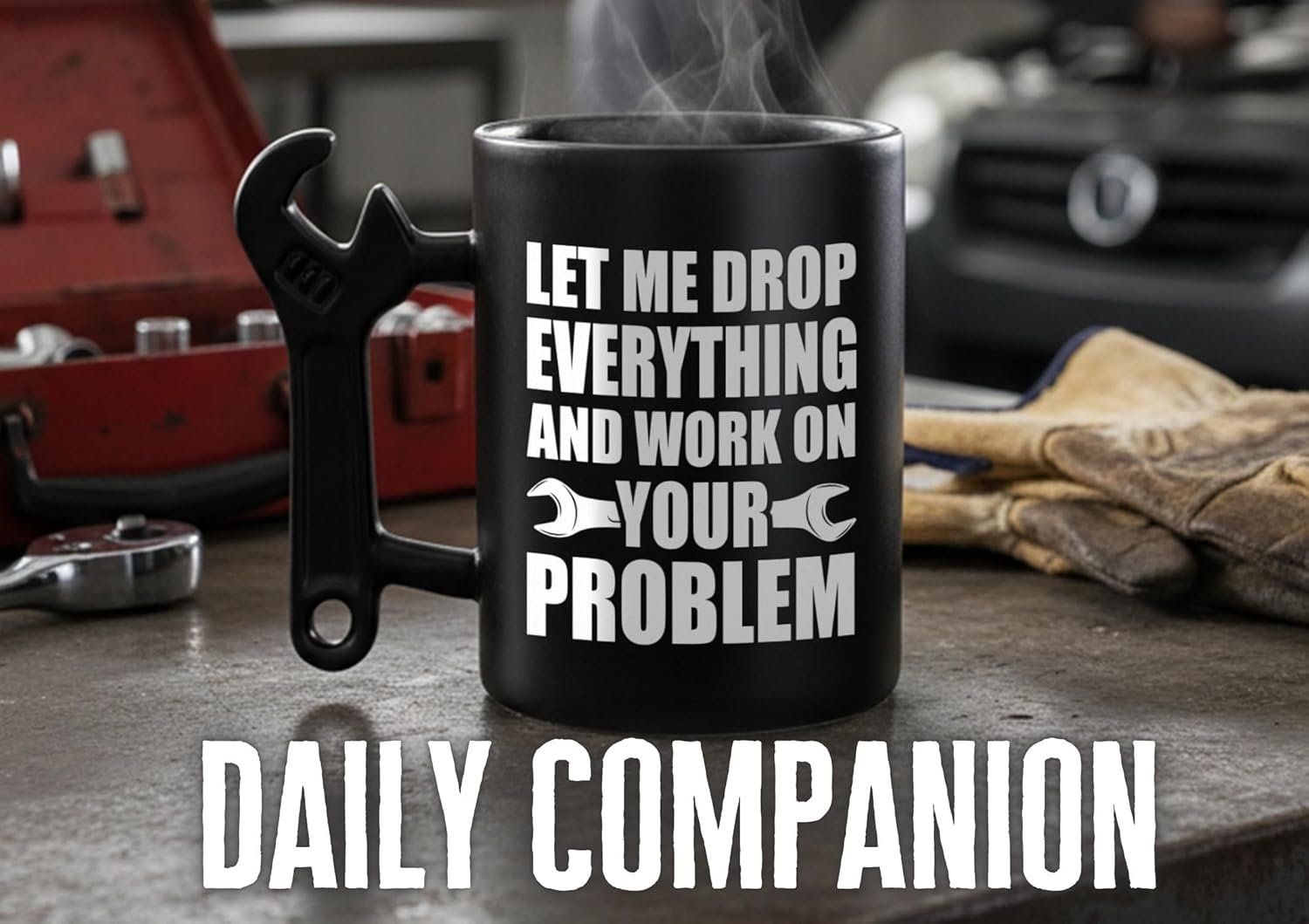 The Funny Mechanic Wrench Handle Coffee Mug is designed for professionals and hobbyists who spend their days repairing, adjusting, and maintaining equipment. With the bold printed phrase, “Let Me Drop Everything and Work on Your Problem,” this mug reflects the humor that many mechanics and technicians understand from daily experience. It captures the reality of being the go-to person whenever something stops working.