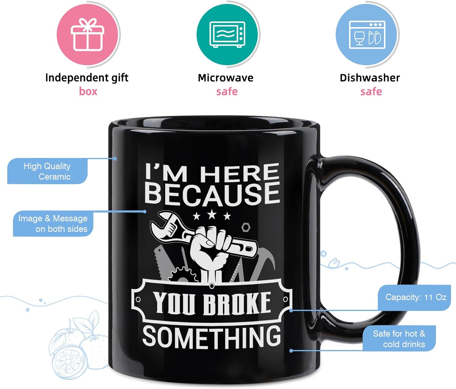 The Mechanic Broke Something Mug offers a simple yet meaningful way to recognize the individual who always steps in to handle repairs. With its bold printed phrase, ceramic construction, and 11oz capacity, it fits seamlessly into workshops, garages, and home kitchens.