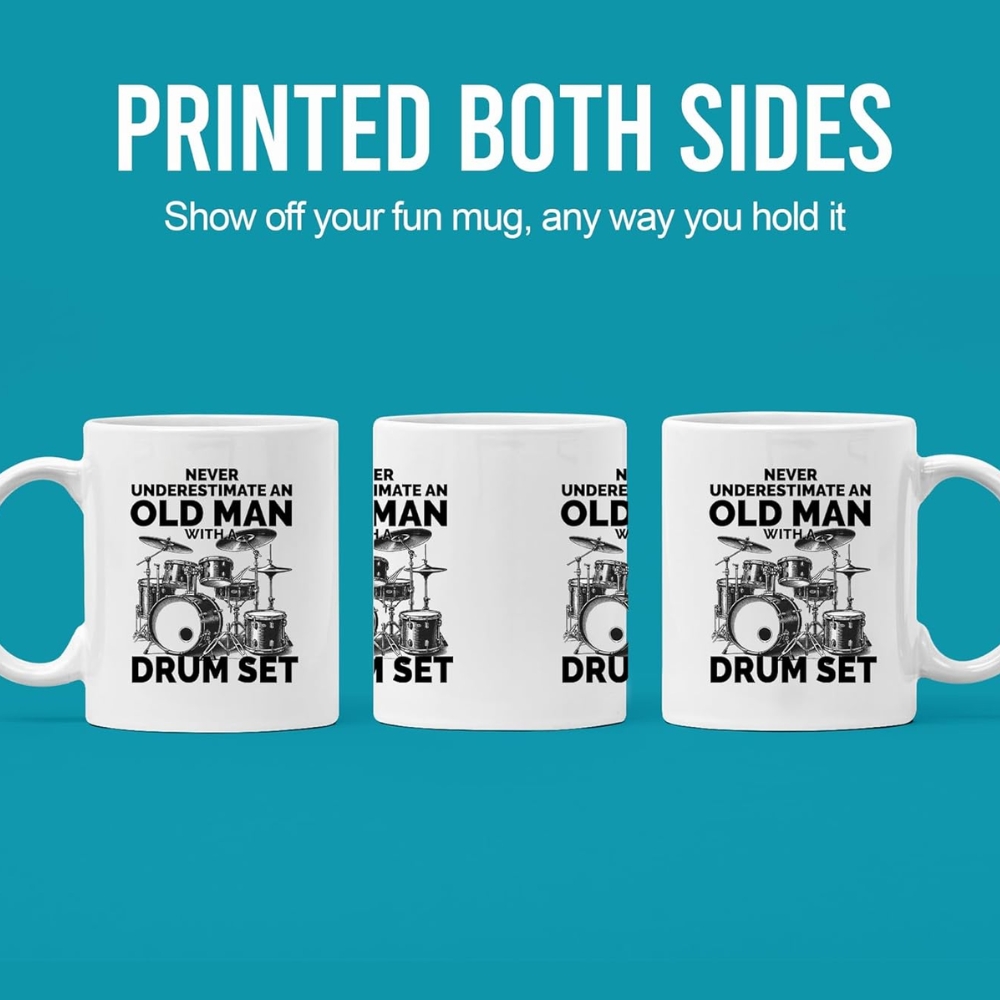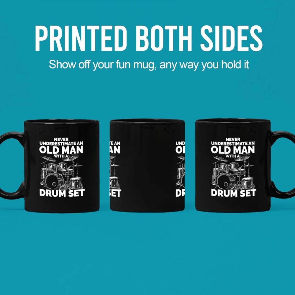 The Funny Drum Set Mug is suitable for daily coffee, tea, or other beverages. Its sturdy ceramic build supports repeated use in both microwave and dishwasher. Reheating drinks becomes simple, and cleaning remains convenient. The glossy finish helps preserve the printed artwork over time while maintaining a sharp appearance.