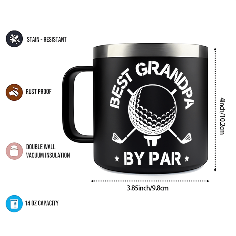 The Golf Theme Grandpa Quote Print 14oz Double Wall Coffee Mug offers a thoughtful blend of themed style and practical use. With its insulated stainless steel build, clear quote print, and reusable design, it serves as a dependable beverage companion and a meaningful gift option. A solid addition to any drinkware collection designed around golf-inspired themes.