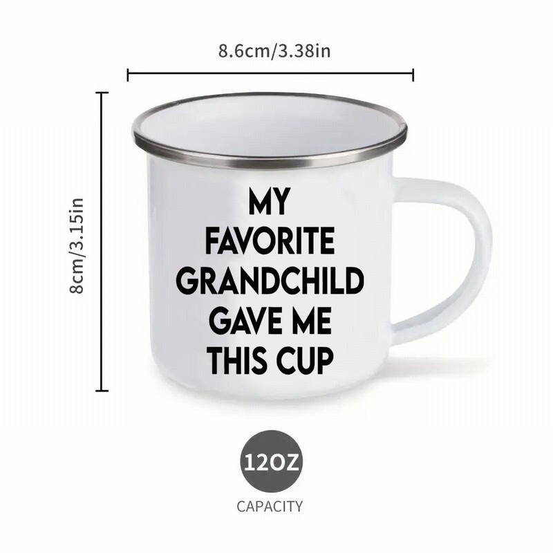 The Grandchild Message Enamel Metal Coffee Mug is a message mug designed for everyday beverages and outdoor routines. It features a bold text design on the front that highlights a grandchild-themed message, making it a meaningful gift item for grandpas and a practical cup for daily use. With an enamel-coated metal build, this mug follows a classic camp-style silhouette that works well for travel drinkware kits, patio use, and camping setups. The lightweight feel makes it easy to pack for trips, and the sturdy handle supports comfortable lifting and carrying. With a 12-ounce capacity, it suits common servings for coffee, tea, cocoa, and other drinks. The message-forward design also makes it easy to identify as a dedicated mug in shared spaces, and the simple layout pairs well with many kitchen styles. Whether used at home, taken outdoors, or given as a gift for Father’s Day or birthdays, the Grandchild Enamel Metal Mug combines a practical mug shape with a clear printed message.