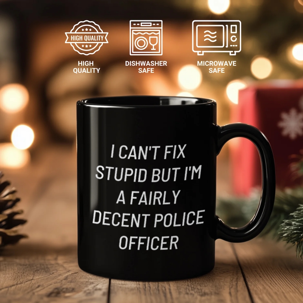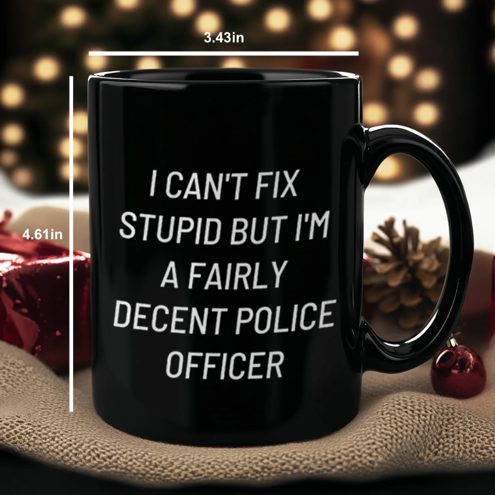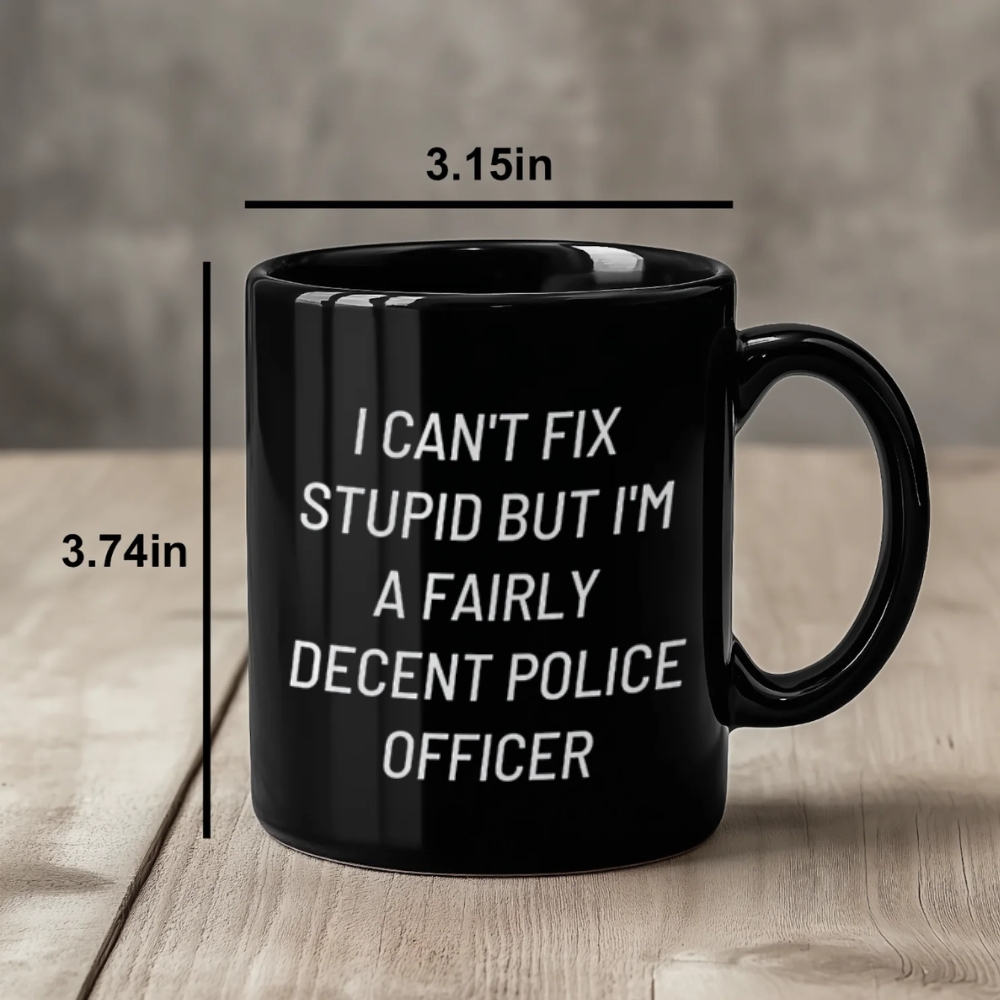Bring a bit of workplace humor to your drinkware with the Police Officer Quote Ceramic Coffee Mug. This ceramic coffee mug features the printed quote: “I Can’t Fix Stupid But I’m A Fairly Decent Police Officer.” The message is displayed clearly for easy reading, making it a conversation starter in an office, station break area, kitchen, or home desk setup. With a straightforward design and practical sizing, this mug fits everyday routines—morning coffee, afternoon tea, or an evening warm drink—without extra fuss.