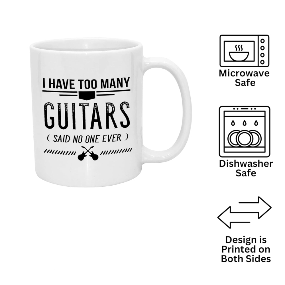 Music often becomes more than a hobby. It becomes part of daily routine and personal identity. The I Have Too Many Guitars Said No One Ever Text Printed Mugicians Coffee Mug reflects that mindset with a statement that speaks directly to dedicated players and collectors. Featuring the phrase “I Have Too Many Guitars Said No One Ever,” this mug delivers humor that resonates with musicians who appreciate their growing collection.