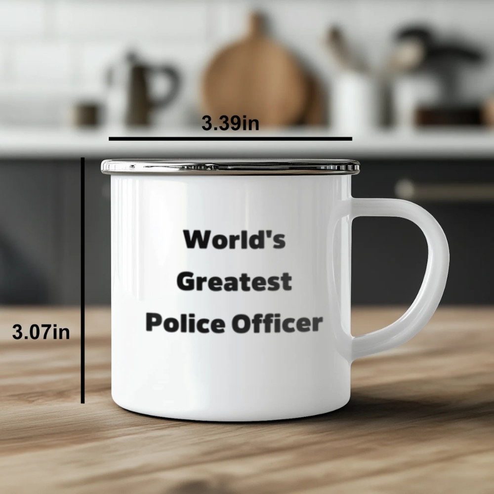 Recognize dedication and service with the Inspirational Police Officer Quote Print 12oz Enamel Camping Mug. Built for both indoor and outdoor use, this stainless steel mug with enamel coating delivers practicality with a bold statement design. Whether used during long shifts, road trips, or camping weekends, it provides dependable beverage service with a meaningful message.