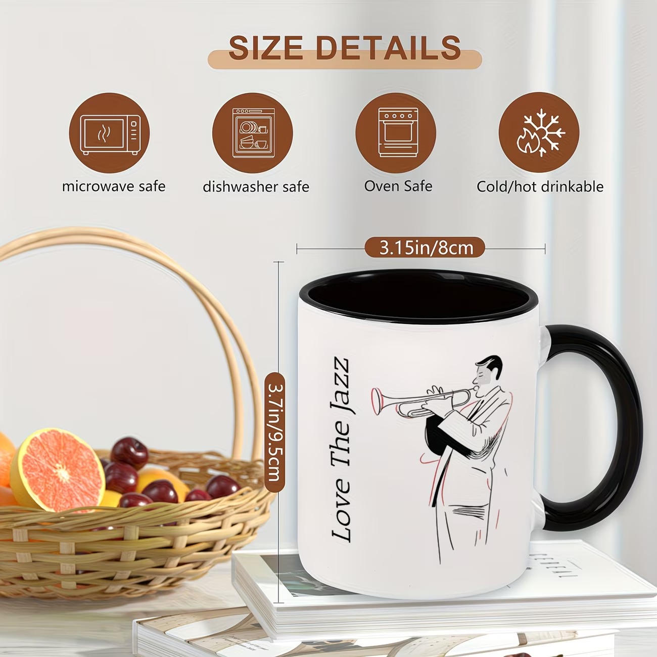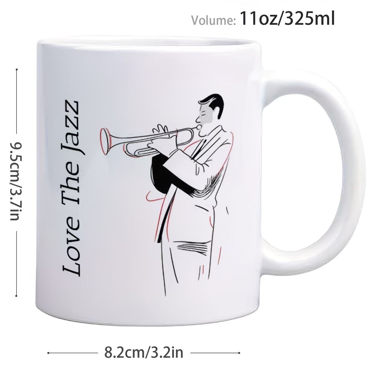 This Jazz Musician Coffee Mug blends artistic design with everyday practicality. The saxophonist sketch and bold typography create a distinctive look that reflects appreciation for jazz culture. Its 11oz size fits standard beverage servings, making it convenient for daily routines.