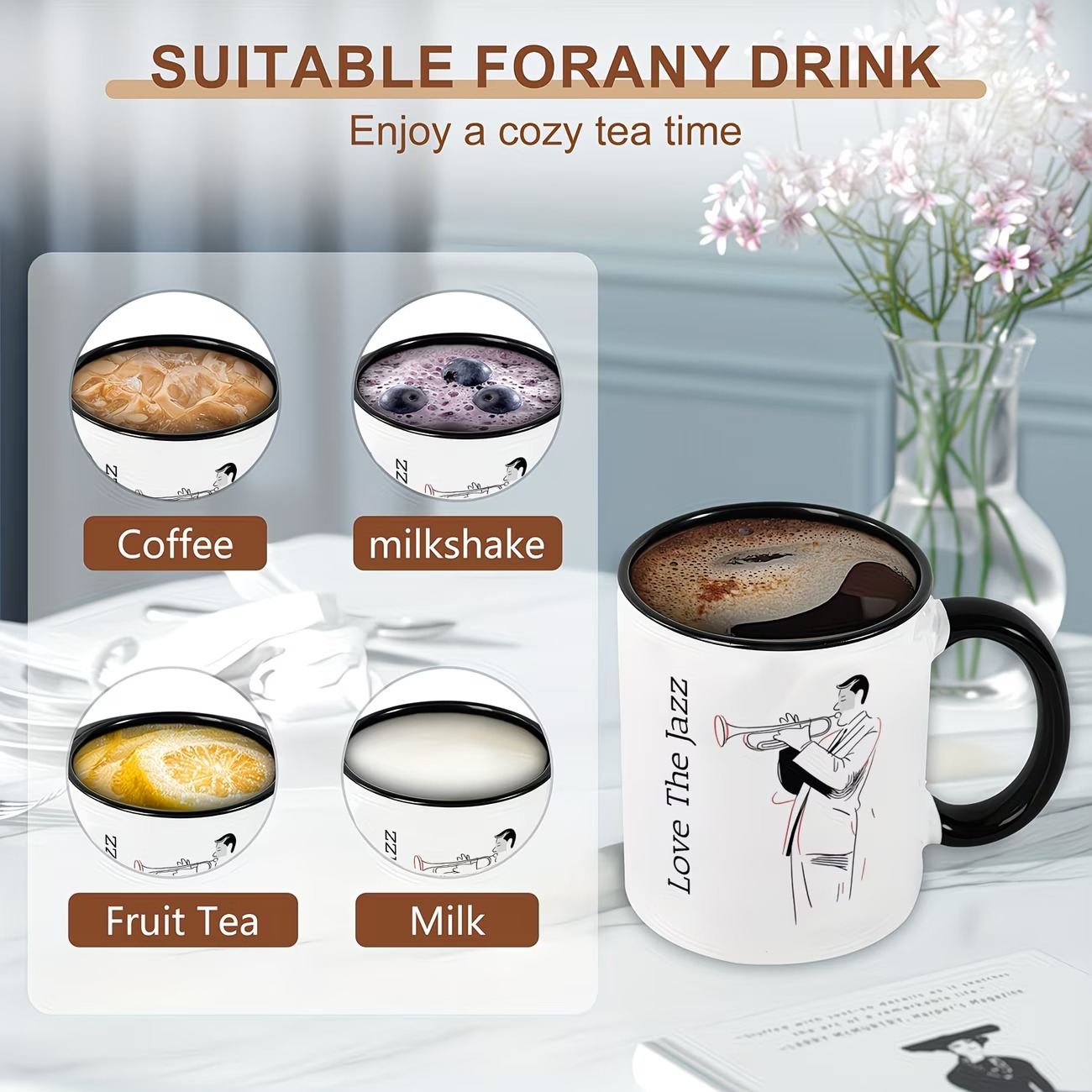 elebrate musical creativity with the Jazz Musician Sketch Print 11oz Ceramic Coffee Mug. Featuring a refined saxophonist illustration paired with “Like The Jazz” text, this artistic coffee cup captures the timeless spirit of jazz culture. The black and white design creates a striking contrast that stands out in kitchens, offices, studios, and creative spaces.