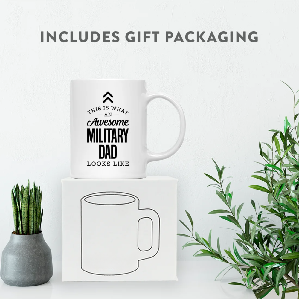 The Military Dad Coffee Mug is built for regular container use while providing a consistent message display across viewing angles. The included box expands its usage beyond daily function, allowing it to be used in both personal and professional presentation contexts.