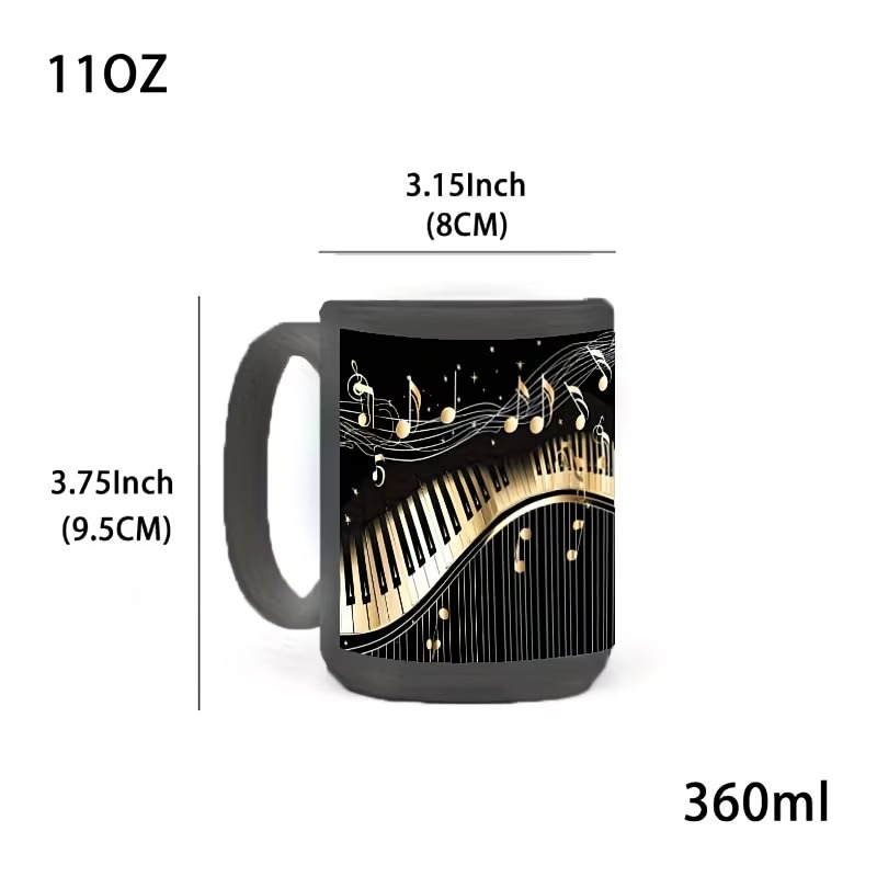 This ceramic mug stands out with its elegant golden piano keys and flowing musical notes that wrap beautifully around the surface. The 11oz size offers convenience for daily beverages without being bulky. Made from ceramic, it provides reliable heat retention for hot drinks and stability for cold beverages. The reusable construction makes it a practical addition to any kitchen cabinet.