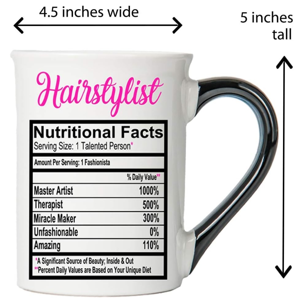 As a gifting option, the Hairstylist Nutritional Facts Mug suits birthdays, appreciation gestures, and professional milestones. Its themed design makes it relevant to salon environments without excessive decoration.