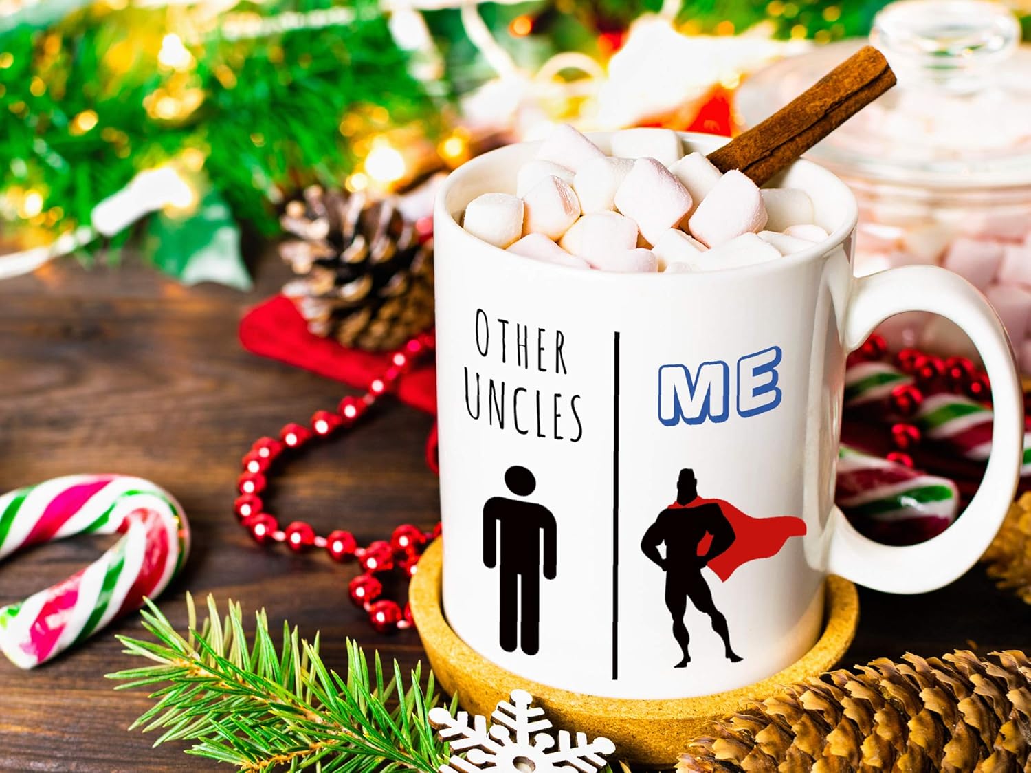 The Other Uncles Versus Me Theme Coffee Mug For Uncle is a ceramic coffee mug featuring a humorous comparison graphic and clean white finish. Designed for everyday use, it balances novelty artwork with standard mug functionality. Its simple shape, clear print placement, and practical capacity make it suitable for regular beverage routines or casual display. The Other Uncles Versus Me Theme Coffee Mug For Uncle is an 11oz ceramic coffee mug featuring a split graphic design that compares “Other Uncles” with “Me.” The clean white surface and printed artwork create a bold visual contrast. Designed for hot beverages, it suits daily use at home or the office.