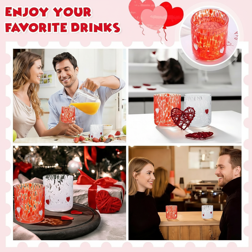 These valentine drink glasses feature a stemless shape that feels stable and easy to hold. The core icon glassware design adds a whimsical theme without looking too busy. The pattern is printed in a balanced way, so the glass still looks clean and modern. Each cup has a thickened base for better balance on tables and counters. This reduces tipping during meals and gatherings.