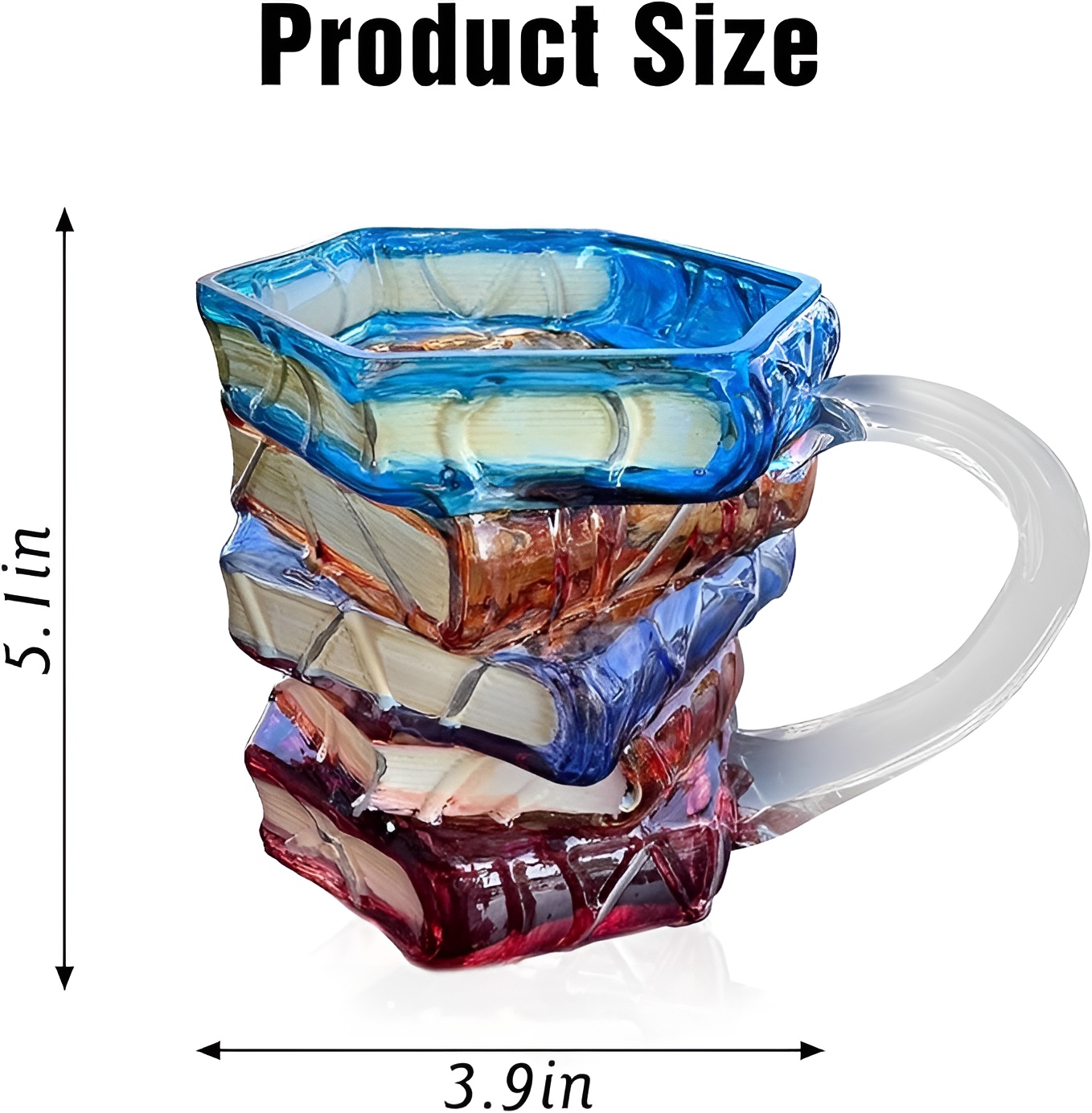 The Painted Book Theme Glass Coffee Mug For Readers is a painted 11-ounce glass coffee cup designed with a stacked book appearance. Combining artistic craftsmanship with practical daily use, it serves as a functional beverage mug and a decorative book-themed accessory suitable for gifting and personal collections.