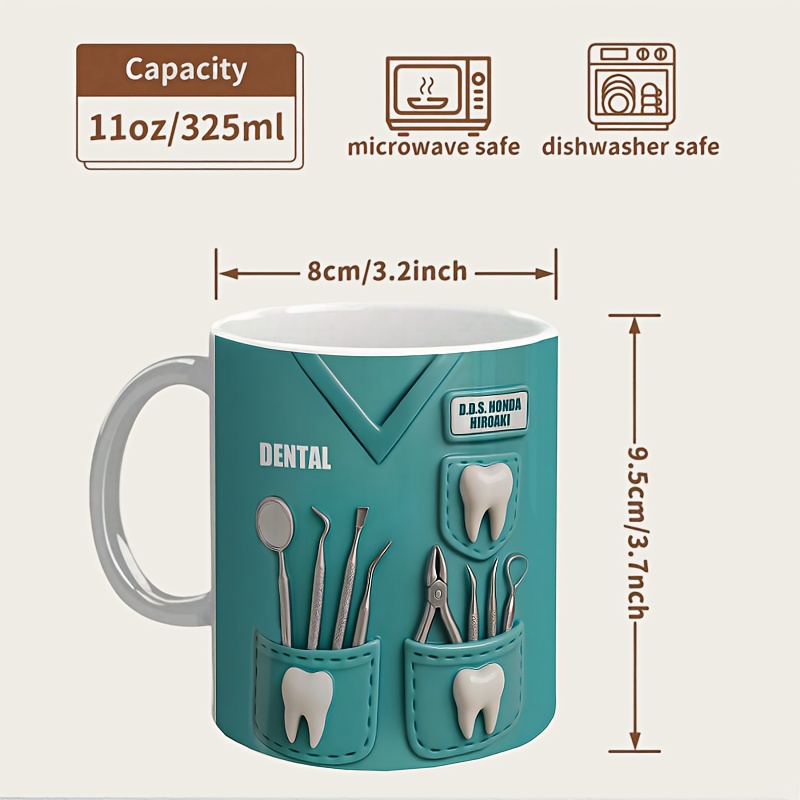 Crafted from ceramic, this 11oz mug combines style and practicality. Its freezer-safe feature allows versatility for chilled beverages, while dishwasher compatibility supports easy cleaning. Whether displayed on a desk or used during breaks, this mug reflects dedication to the dental profession in a distinctive way.