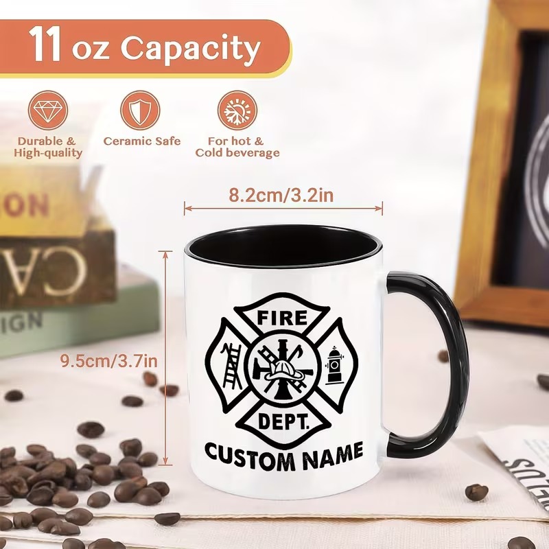 This fire department mug offers a combination of symbolic meaning and practical everyday use. The emblem design reflects commitment and teamwork, while the custom name option adds individuality. It transforms a simple coffee cup into a personalized tribute to service.