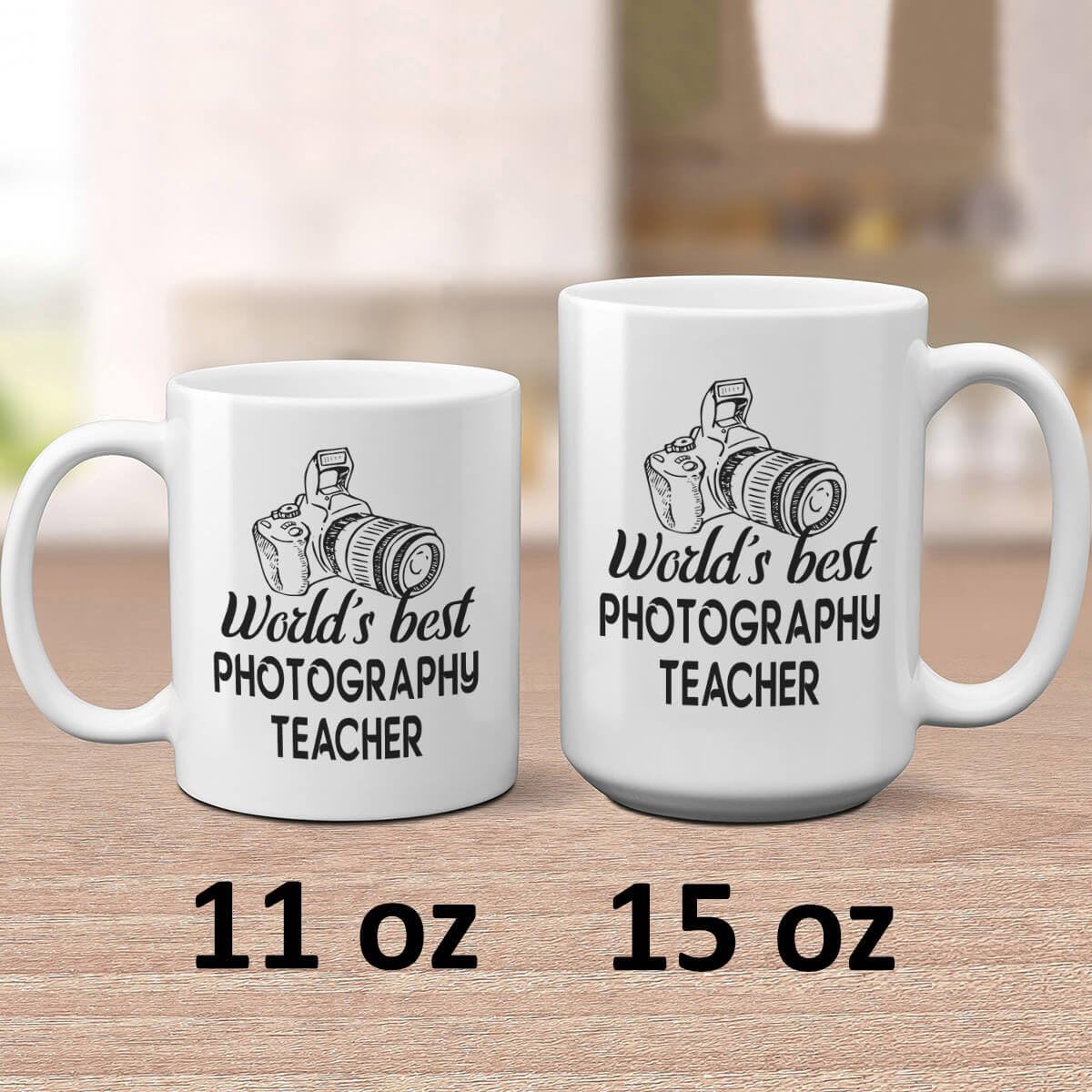 Each cup is produced with attention to print clarity. The sublimation method integrates the design into the ceramic surface rather than layering it loosely on top.The Photographer Teacher Coffee Cup combines appreciation messaging with a camera themed design in a structured ceramic format. Available in 11oz and 15oz options, it supports different beverage preferences while maintaining practical features such as microwave and dishwasher compatibility.
