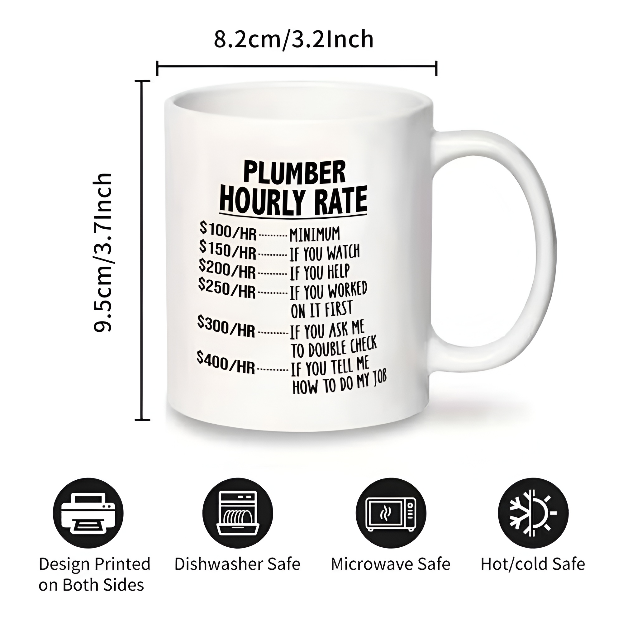 This Plumber Hourly Rate Mug combines humor with everyday practicality. The price chart format captures attention and sparks conversation, making it a distinctive addition to any coffee collection. Its 11oz size offers a convenient serving for morning coffee or afternoon tea without taking up unnecessary space. The ceramic construction provides a smooth finish and balanced feel suitable for both home and workshop settings.