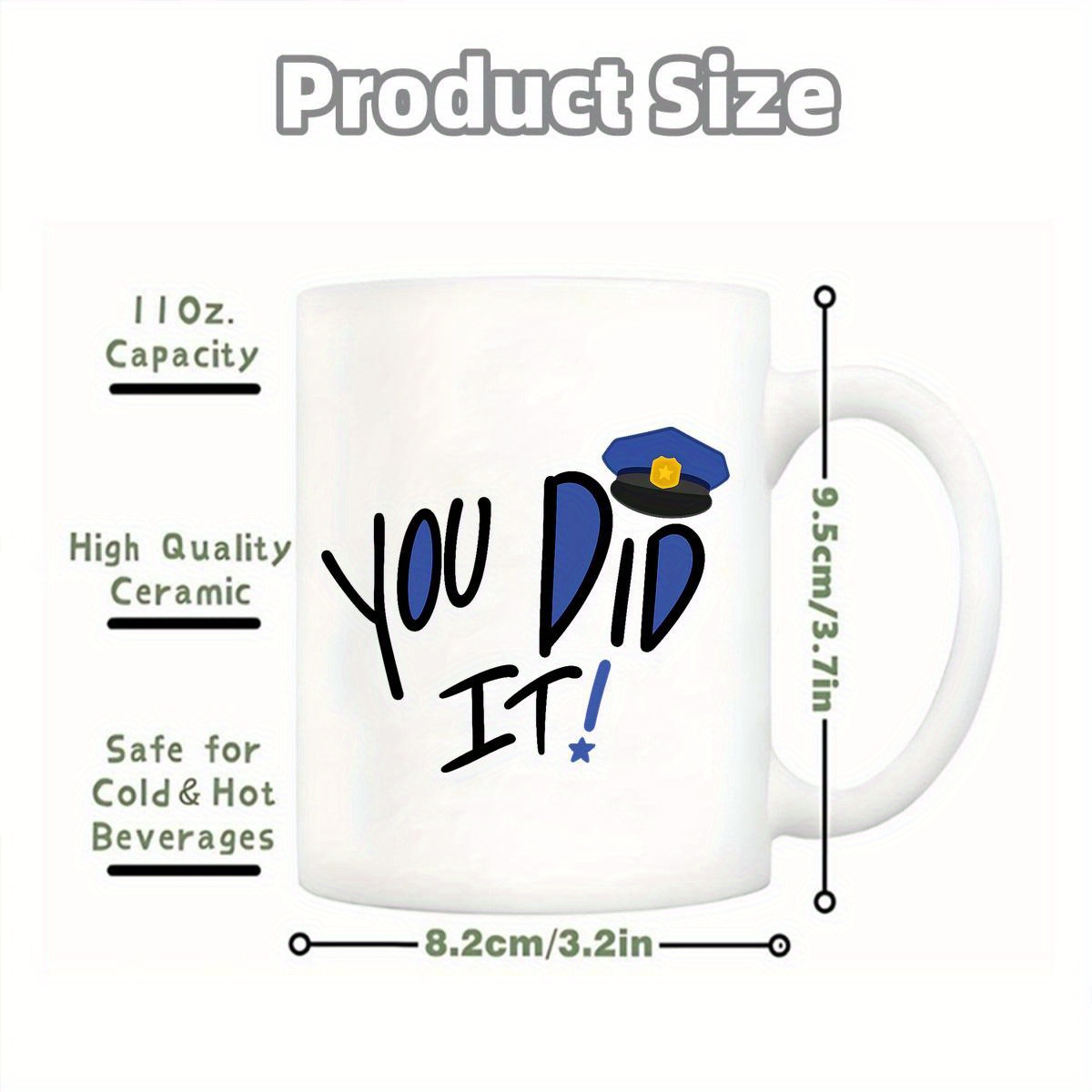 The Police Academy Graduation Mug features a “You Did It!” message with an officer cap graphic, making it a fitting choice for graduation occasions and milestone celebrations. Made from ceramic with a smooth surface and a classic shape, it suits everyday beverages like coffee, tea, cocoa, juice, and water in home, office, or station settings. With its clean, readable design and gift-friendly theme, this mug offers a practical way to celebrate a proud achievement while adding a meaningful item to everyday routines.