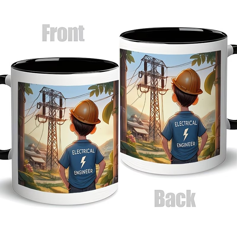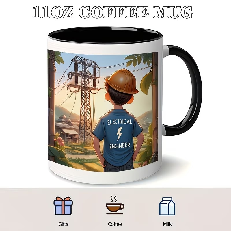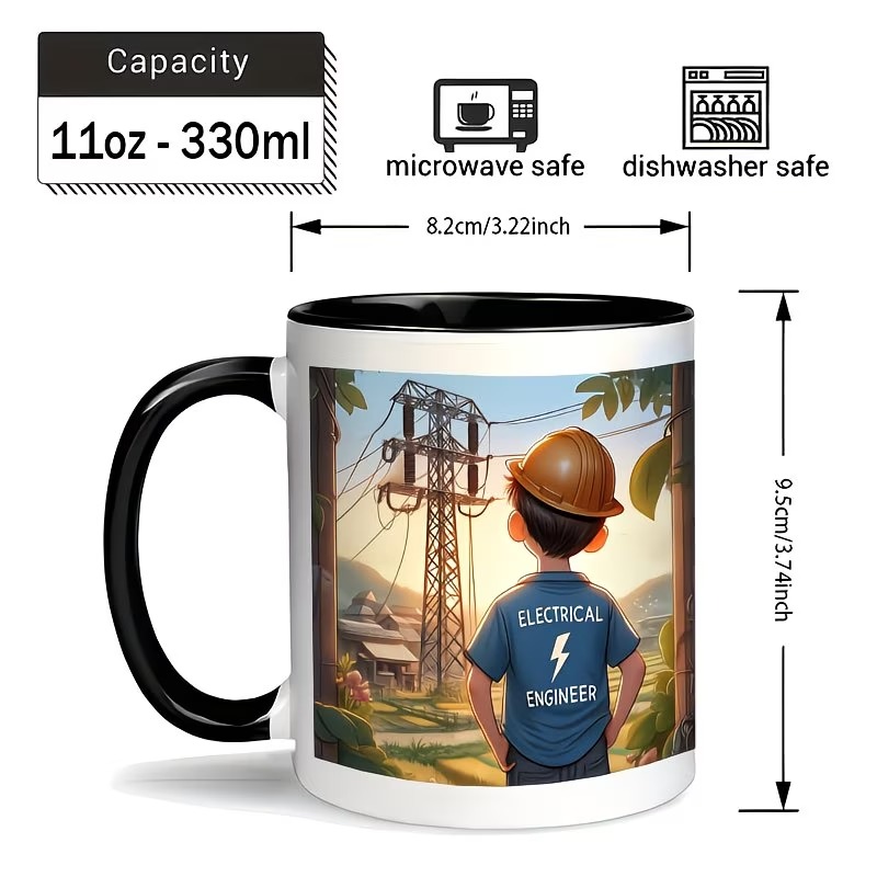 The Power Line Engineer Mug is a ceramic 11oz coffee mug featuring an engineer-themed illustration with a power line tower scene. With its classic round shape, standard handle, and reusable format, it fits daily coffee, tea, or milk routines at home, in the office, or in study spaces. Simple cleaning with mild dish soap, warm water, and a soft sponge helps keep the printed artwork looking clear over time.
