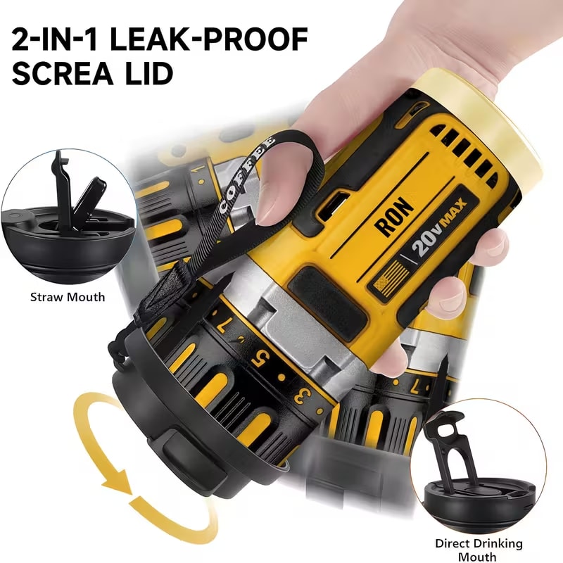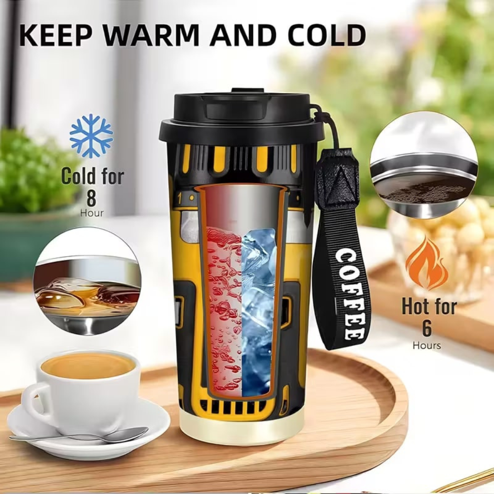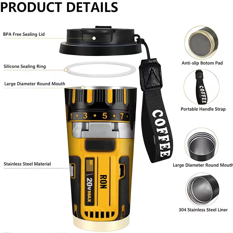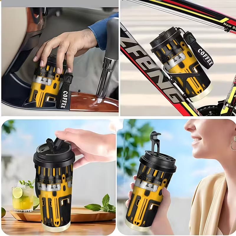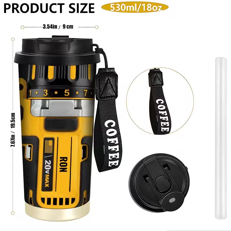 Power Tool Drill Style 18 Oz Stainless Steel Travel Mug With Lid
