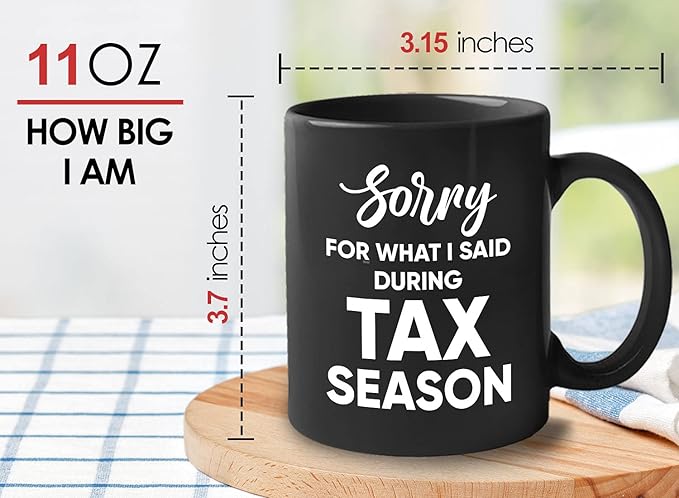 Outside tax season, the mug still functions as a standard beverage cup. Its humorous theme remains relevant for accountants year round.