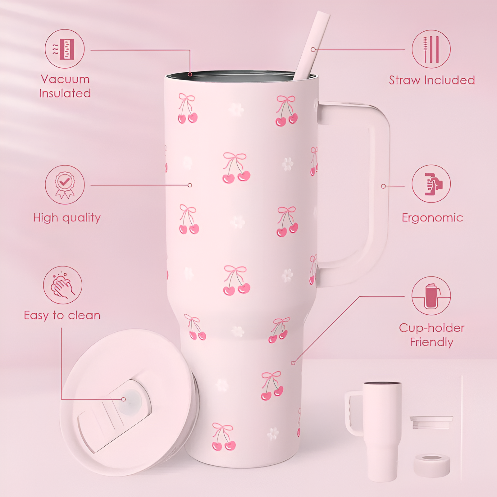 - Anti-Slip Bottom Design: Provides extra stability in car cup holders.