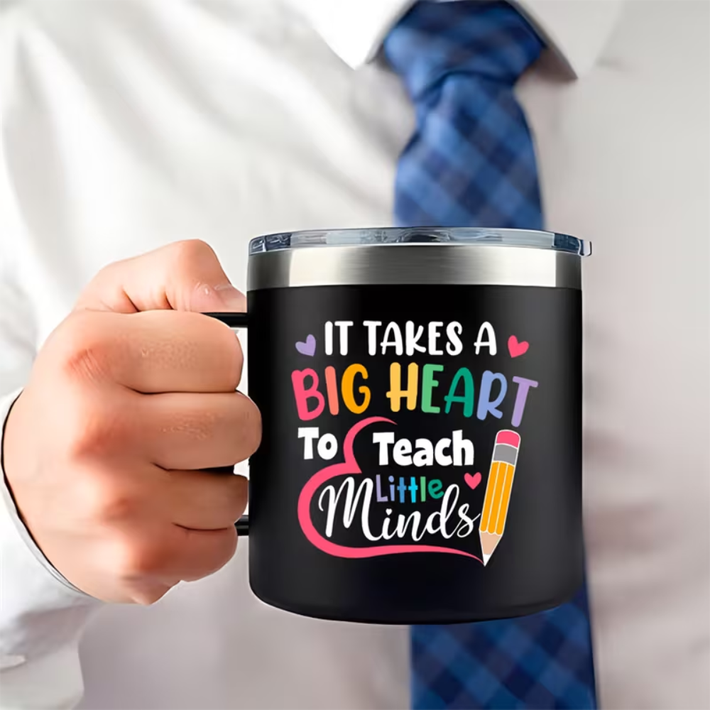 This mug also works well for vehicle use and outdoor activities. It can be taken to school events, day trips, camping, or sports days where a lidded mug is helpful. For gifting, it is simple to select because it does not involve sizing and suits many recipients in education roles. It can be given to classroom teachers, subject teachers, teaching assistants, tutors, and school staff. It also pairs well with small add-ons such as coffee packets, tea sachets, cocoa mix, or desk items to create a themed gift bundle.