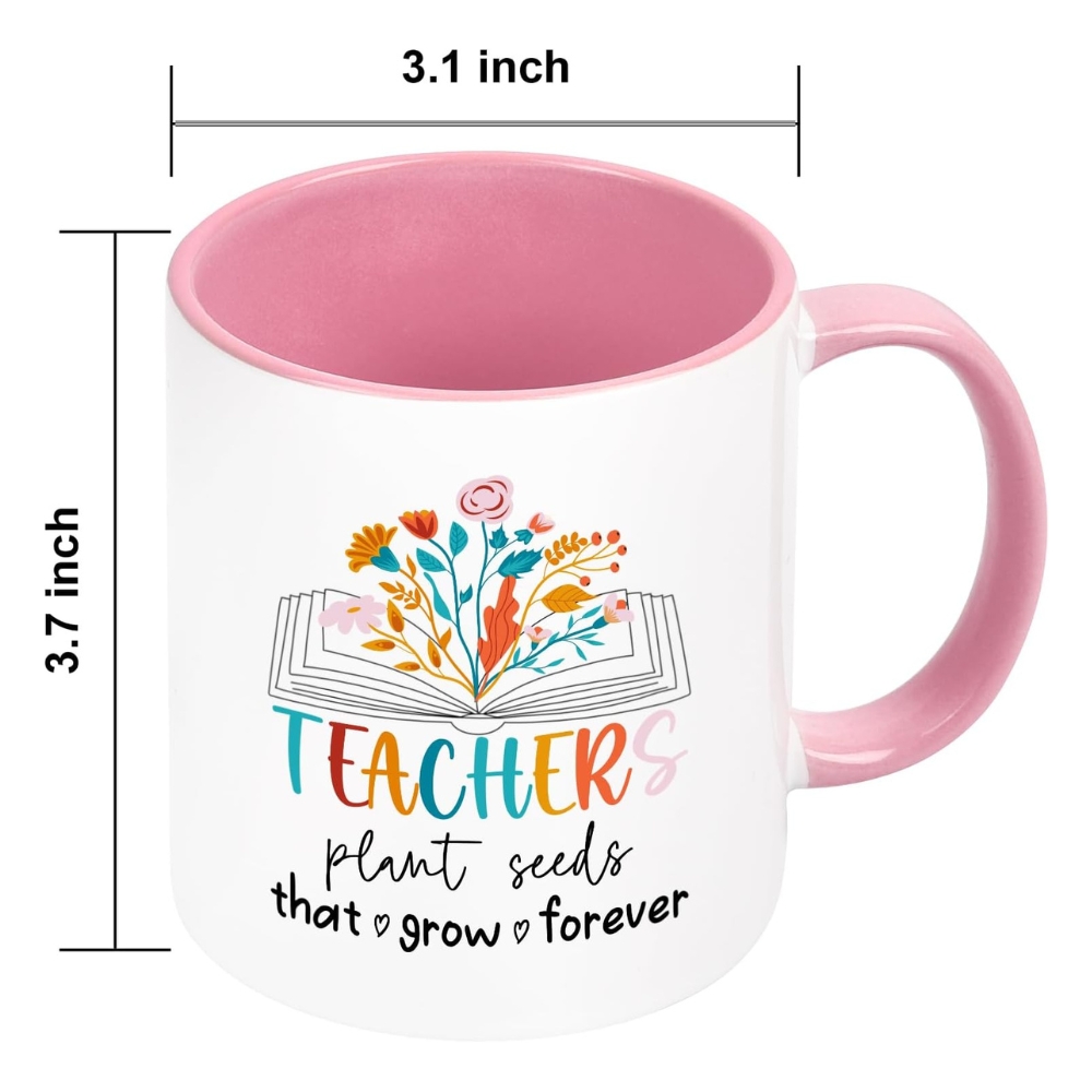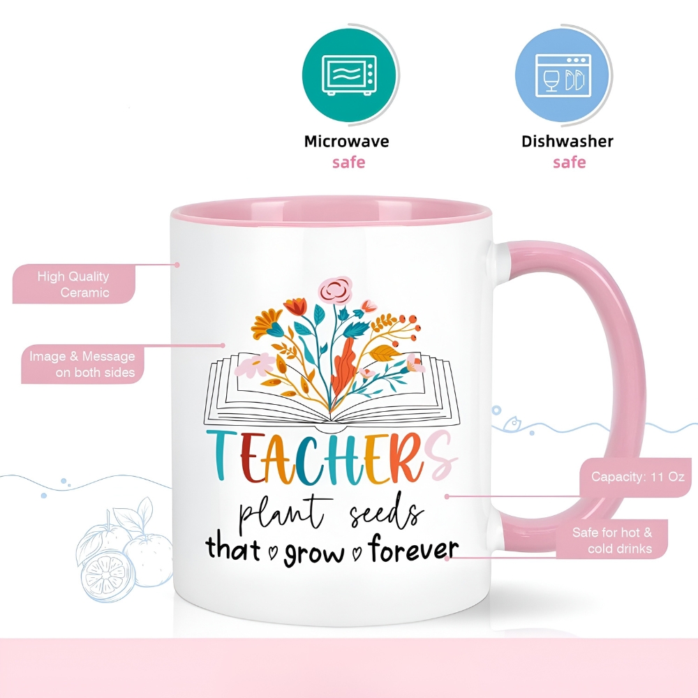 The Teacher Appreciation Plant Seeds mug stands out because it reflects the true role of an educator. Teachers introduce ideas, nurture curiosity, and guide students toward lifelong learning. The blooming book illustration visually represents knowledge taking root and growing far beyond the classroom.
